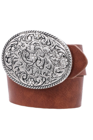 Faux Leather Floral Filigree Oval Buckle Belt