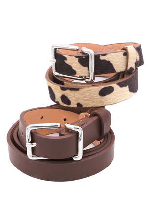 Cow Print Duo Belt with 3D D-Loop Rectangle Buckle