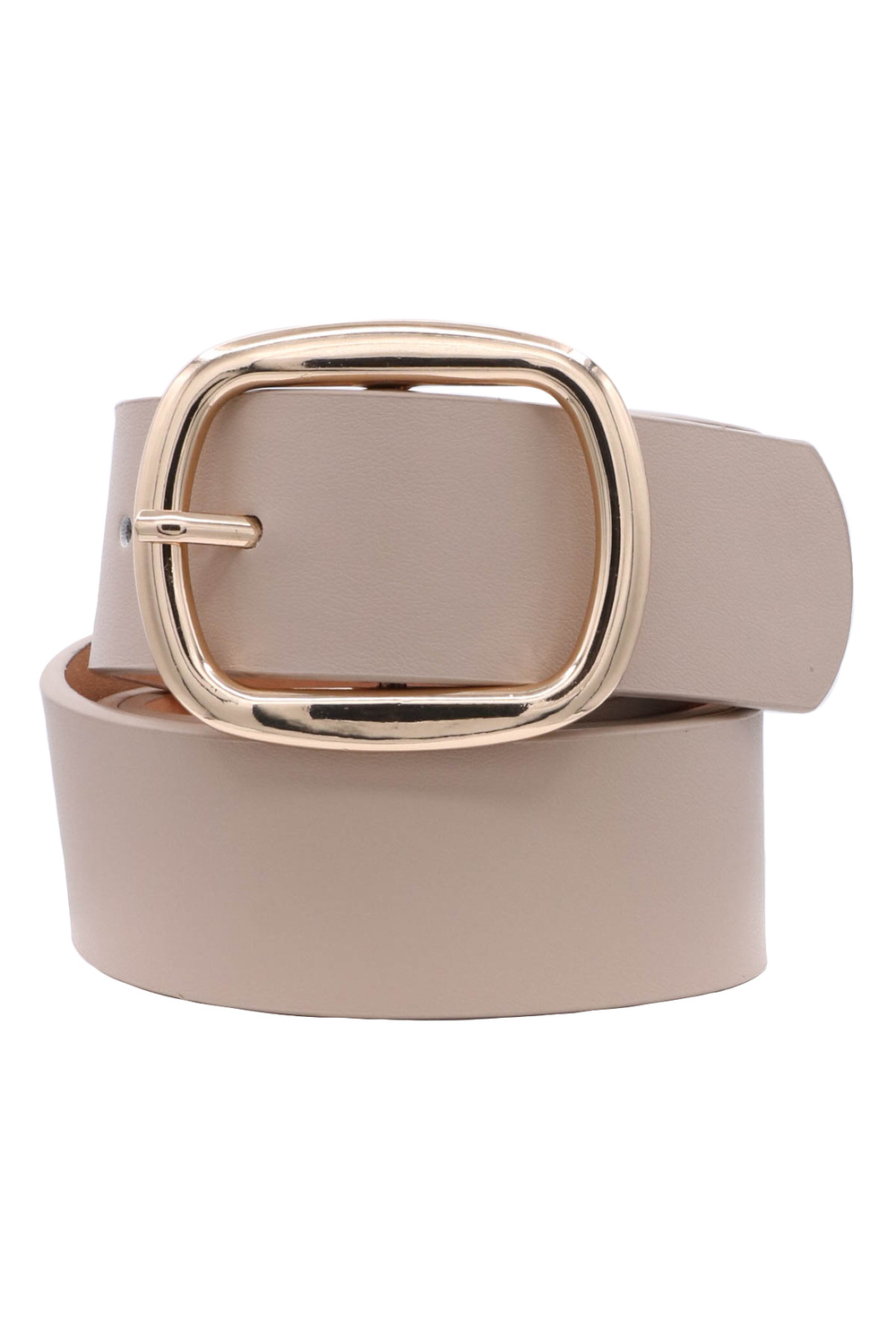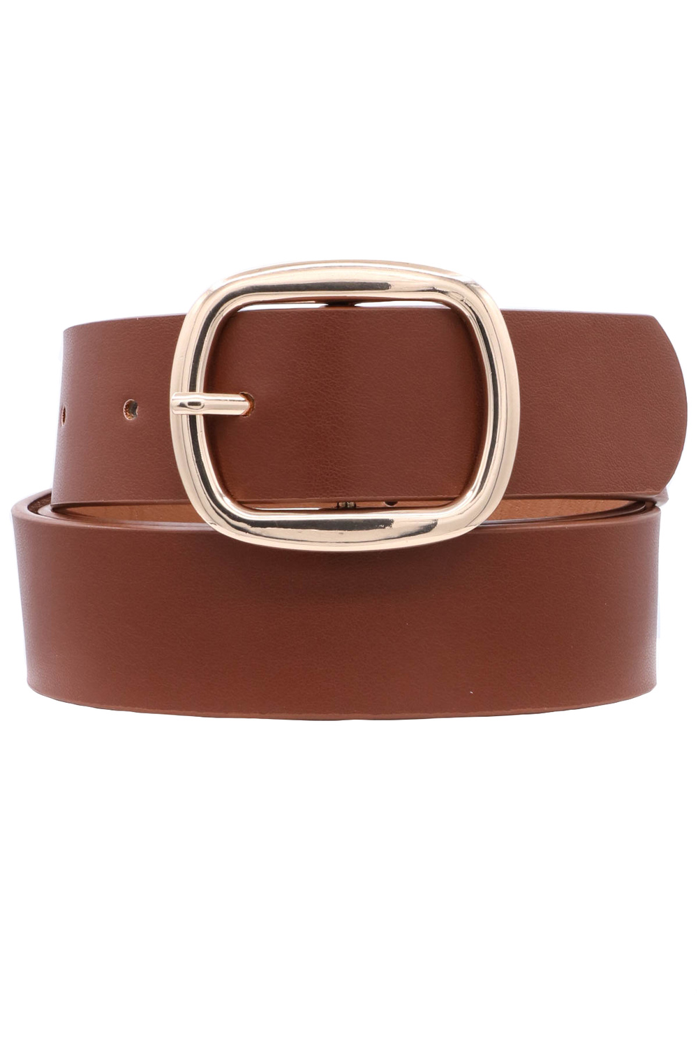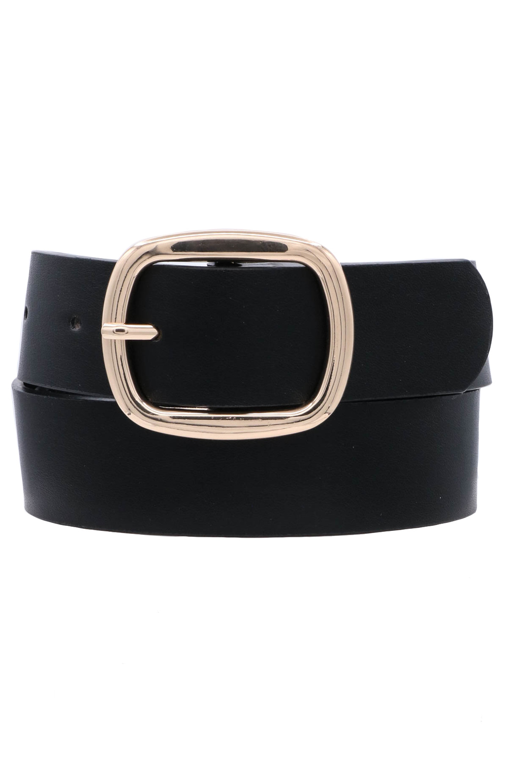 - Chic and versatile, this faux leather belt showcases a rounded rectangle buckle for a polished, timeless look. Ideal for casual or dressy outfits.