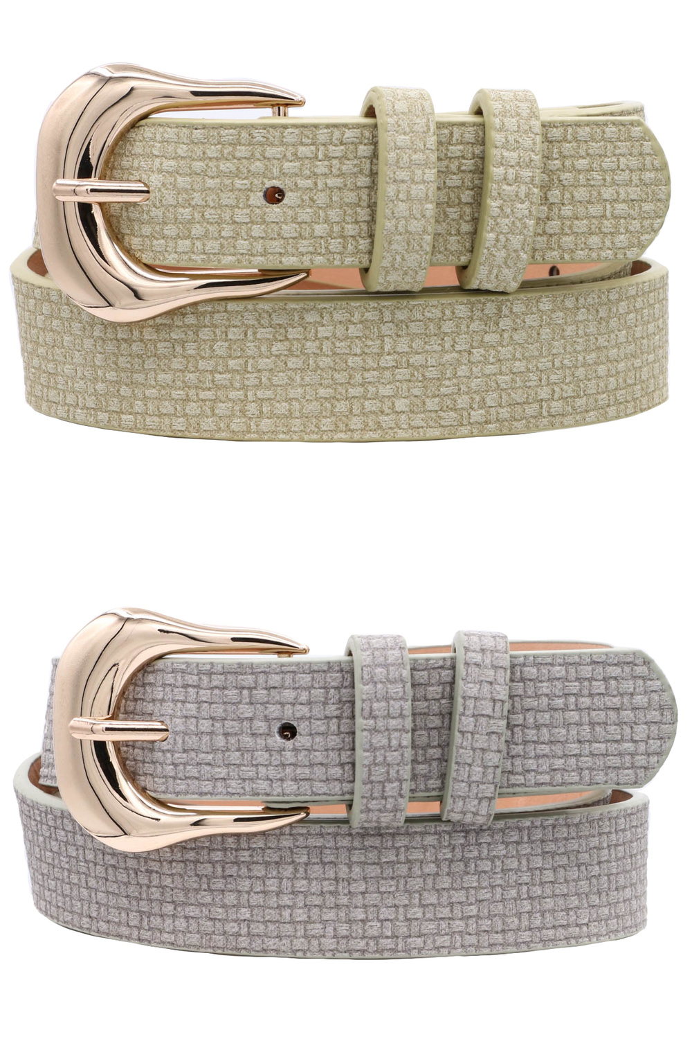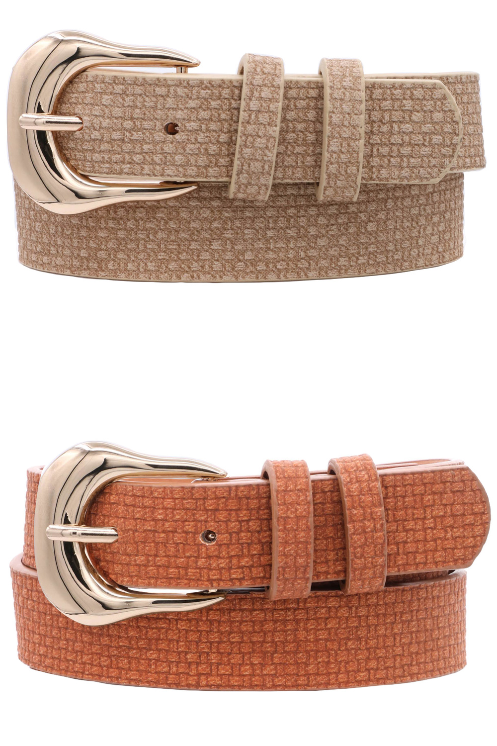 - Stylish basket weave belt featuring a double self-loop design for a chic, modern touch. Perfect for layering or accentuating any outfit with subtle texture