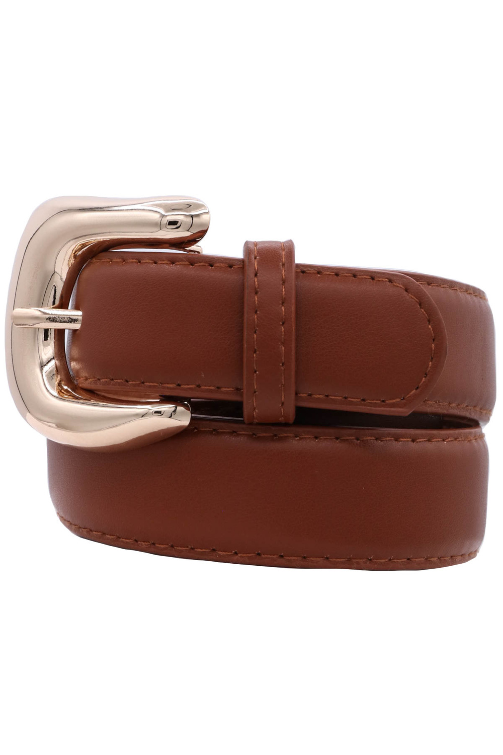 - Faux leather organic curve U buckle belt