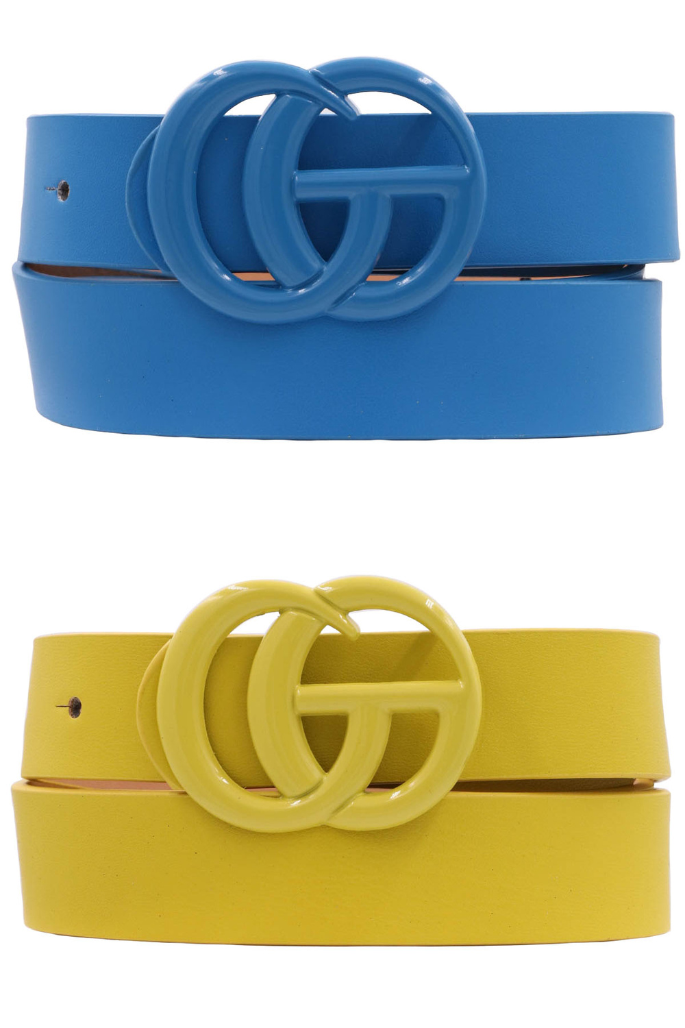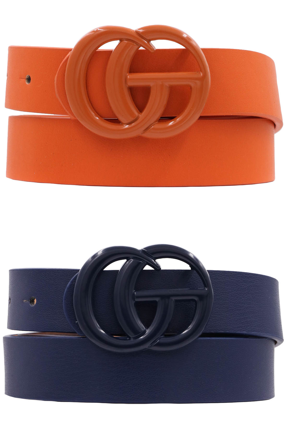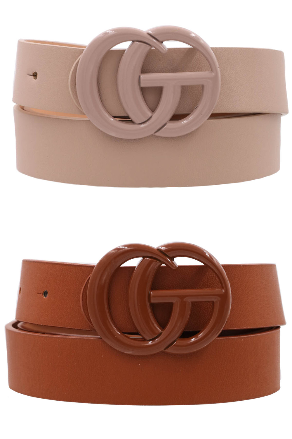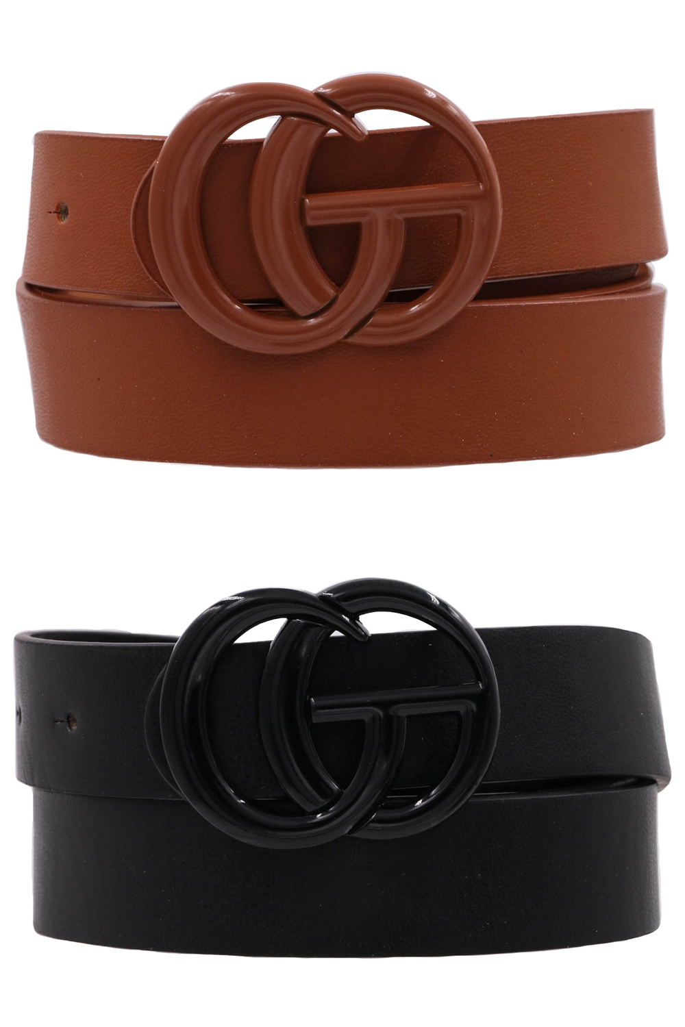- Metal color coated faux leather belt set