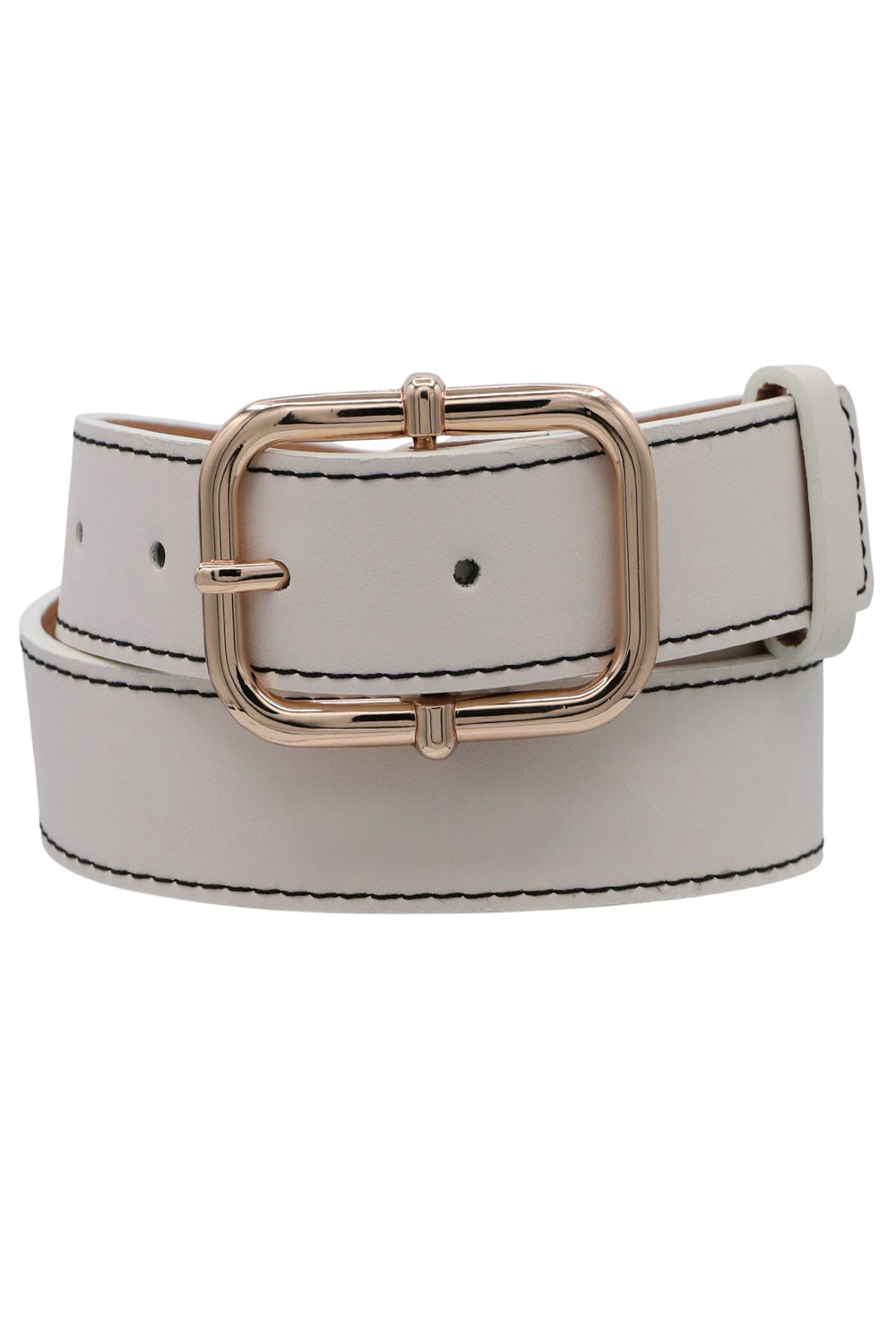 - Outside stitched rectangle buckle belt.