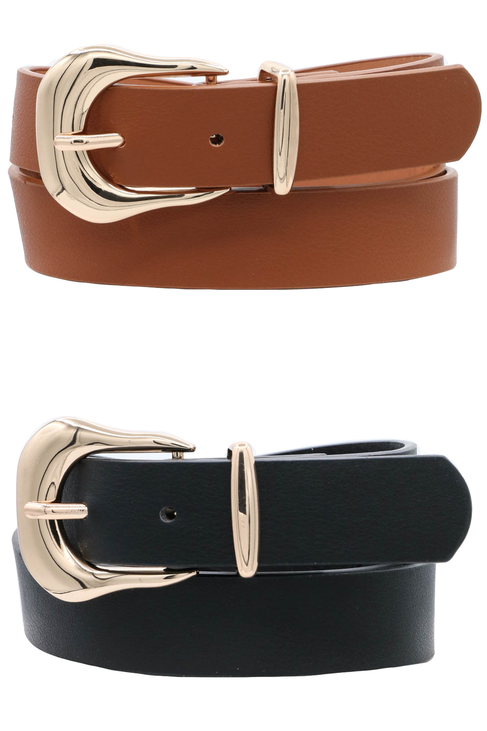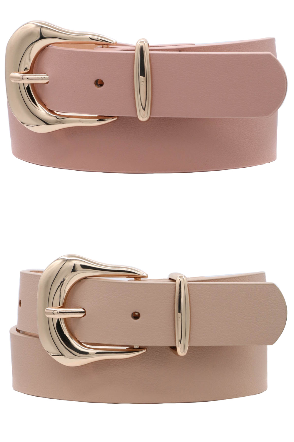 - Sleek dainty belt featuring a fluid U-shaped buckle with double metal loop detailing. A minimalist accessory designed to elevate everyday and dressy looks.