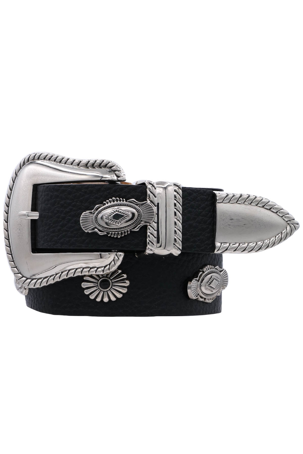 - Rope trimmed metal concho stap western belt