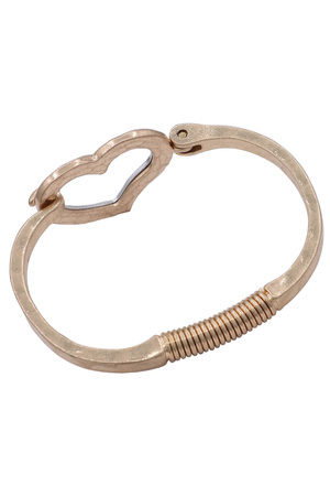 Metal Hammered Heart Cutout Bangle Bracelet