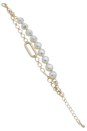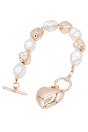Metal Single CCB Pearl Puffy Heart Charm Bracelet