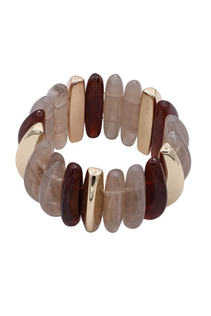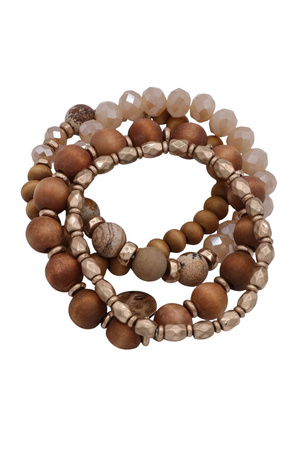 Hammered Disc Multi-Row Wood & Stone Bracelet