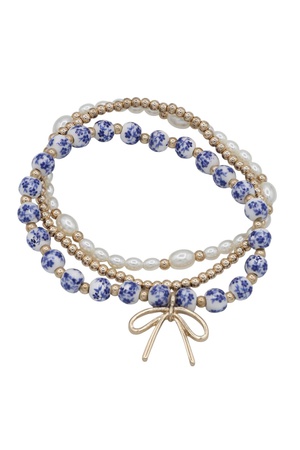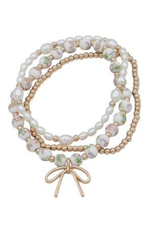 Ceramic Bead Bracelet Trio with Bow Accent
