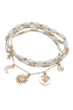 Cream Pearl Sun and Moon Multi-Charm Bracelet Trio