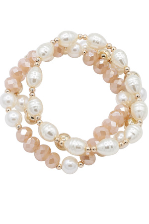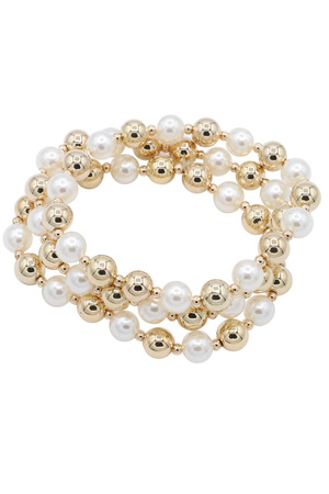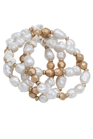 Metal Cream Pearl Beaded Stretch Bracelet Set