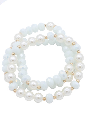 Acrylic Cream Pearl Beaded Stretch Bracelet Set