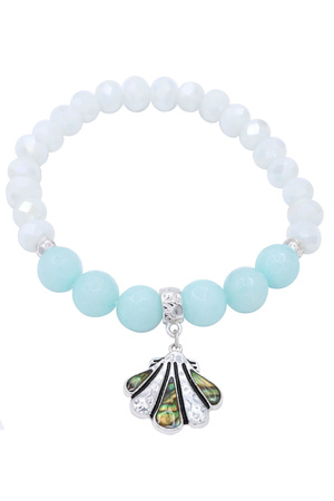 Metal Beaded Sea Shell Stretch Bracelet Set