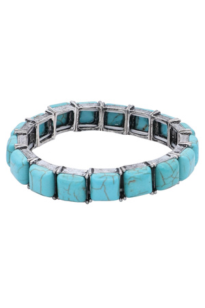 Metal Hammered Disc Stone Stretch Bracelet Set
