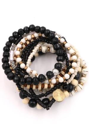 Assorted Bead Creamp Pearl Stretch Bracelet Set