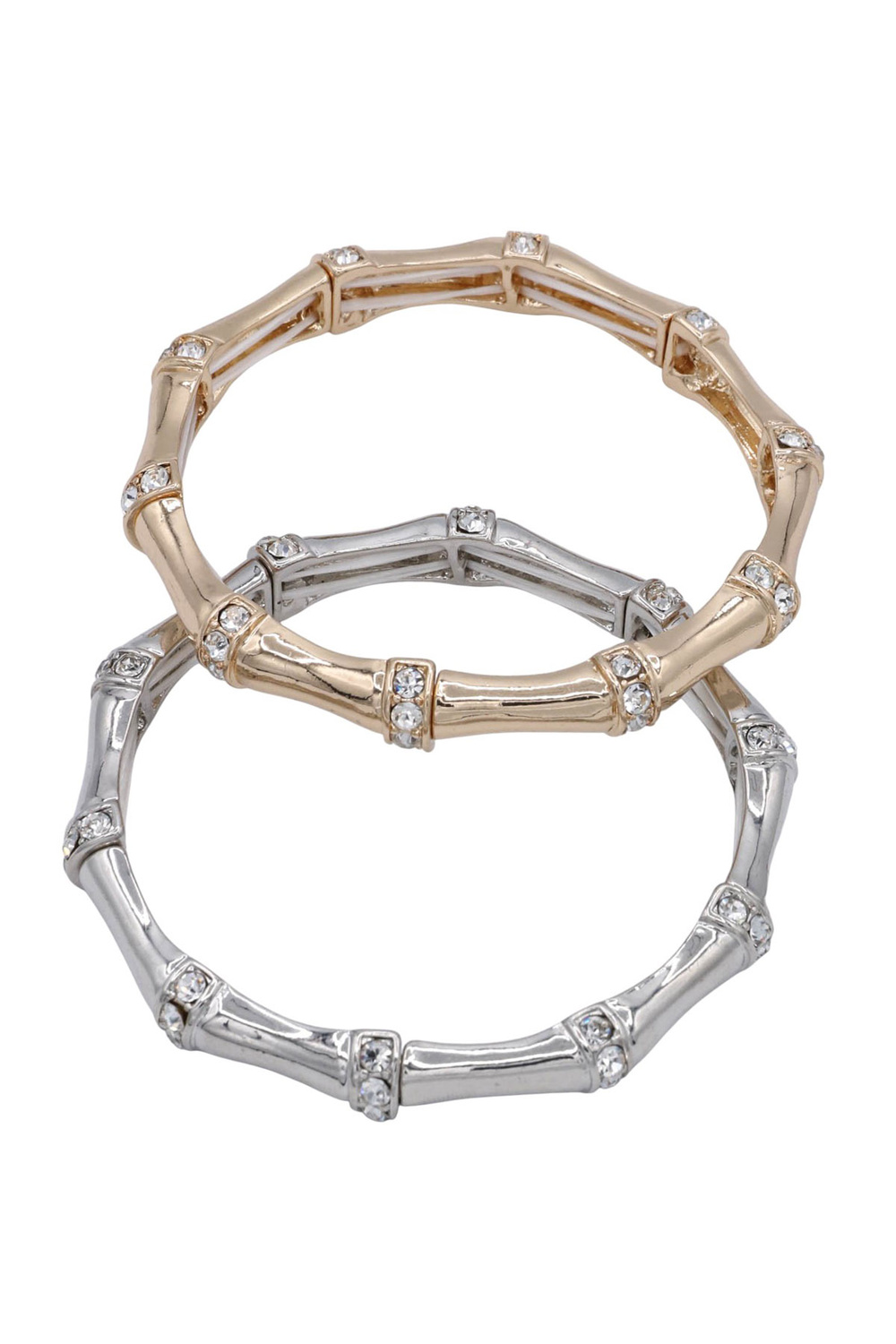 - This chic stretch bracelet showcases bamboo-style cast links accented with pave sparkle, creating a unique blend of nature-inspired texture and elegance. Perfect for stacking or wearing solo.