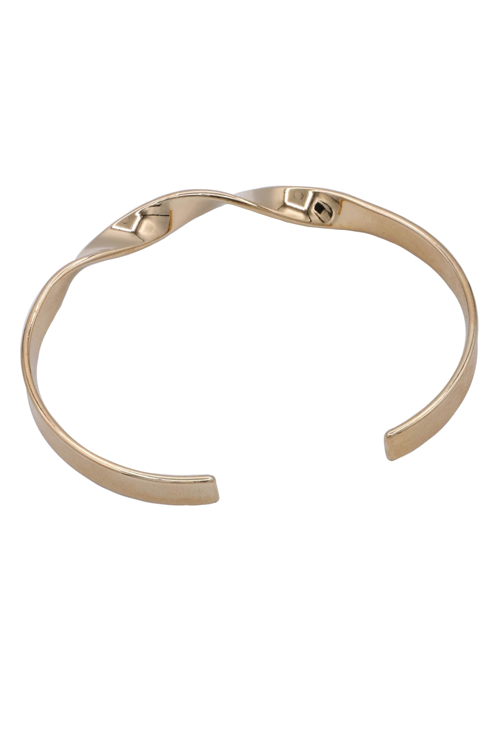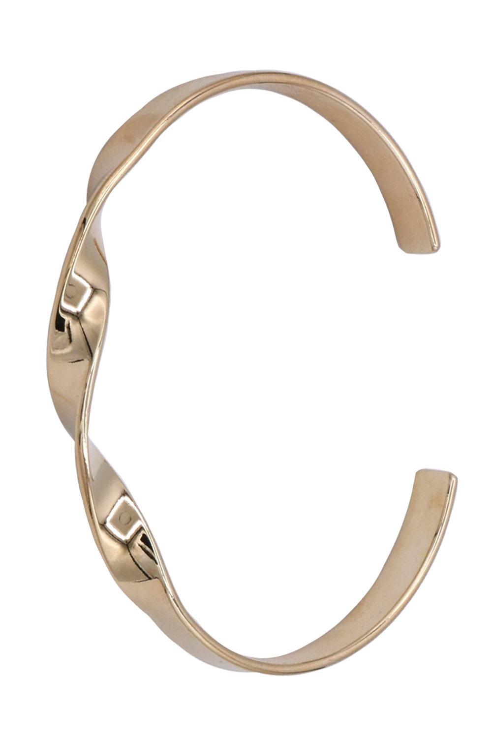 - This exquisite gold cuff bracelet embodies a perfect fusion of modern artistry and timeless elegance. Its captivating twisted design, reminiscent of a sculpted ribbon, creates a dynamic visual interest that sets it apart from conventional jewelry. This is more than just a bracelet, it's a wearable piece of art that enhances your natural radiance and complements your individual fashion narrative.