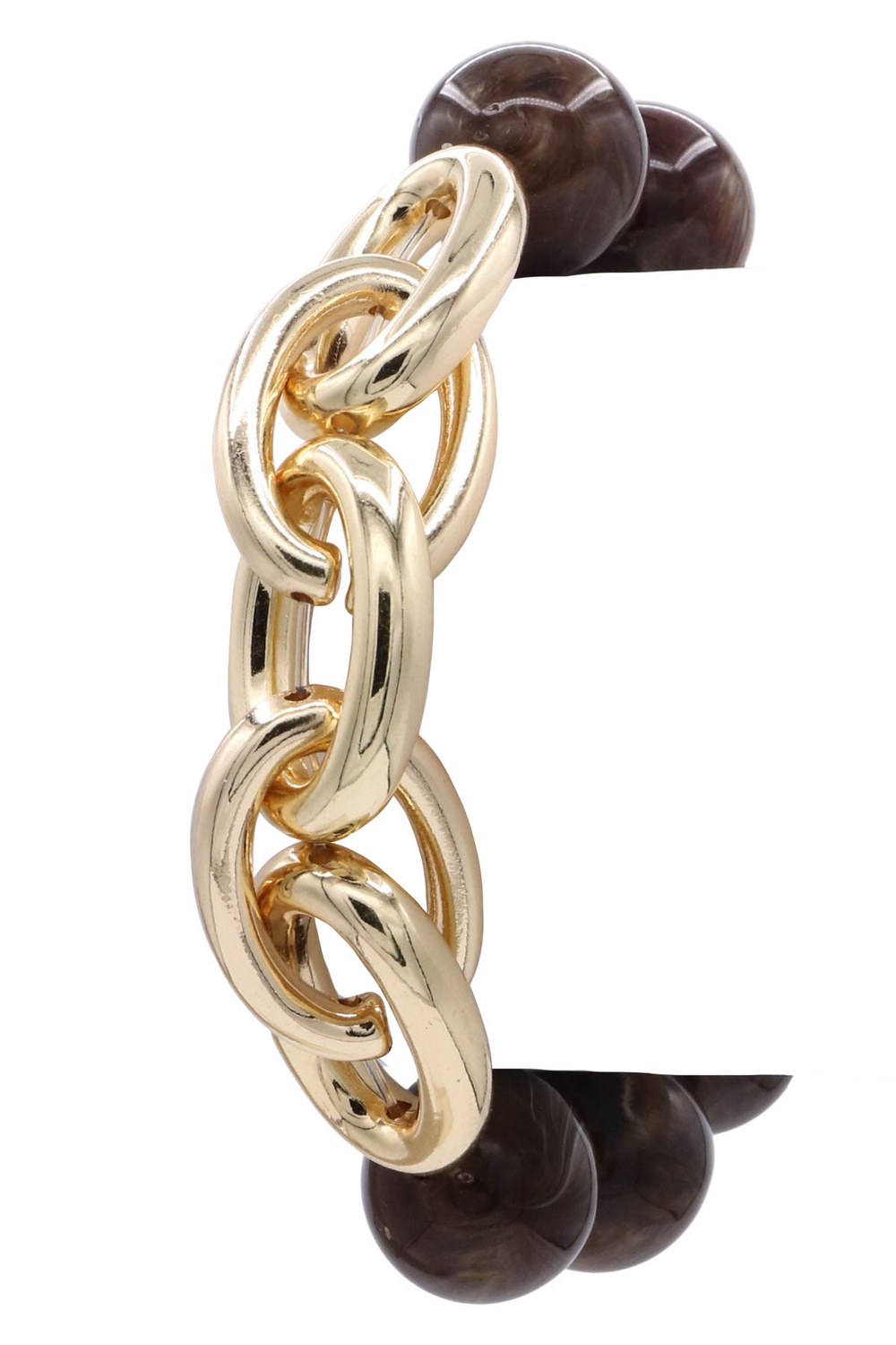 - Stylish bracelet combining smooth marble beads with metal chain links. Designed with stretch for a comfortable, easy fit.