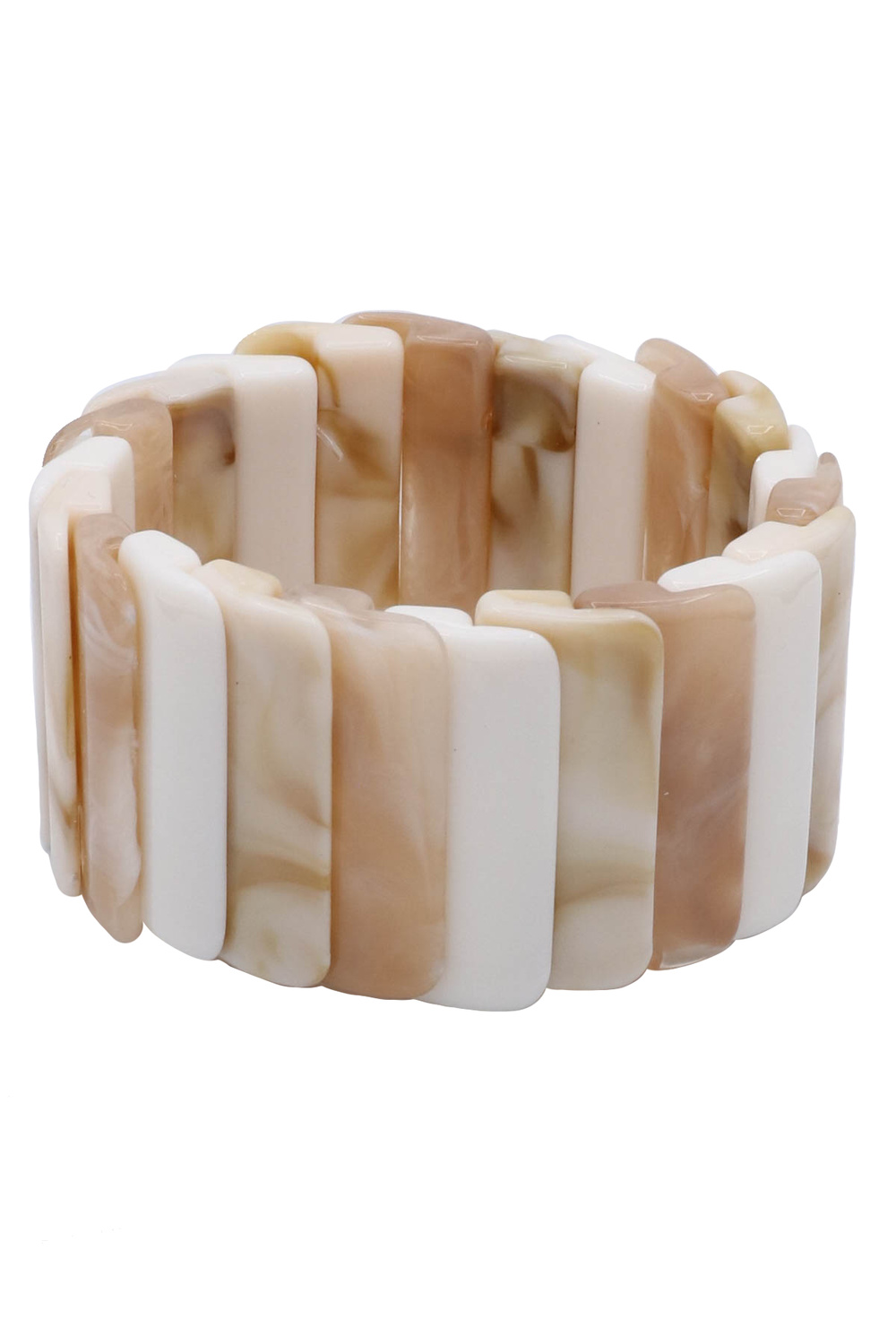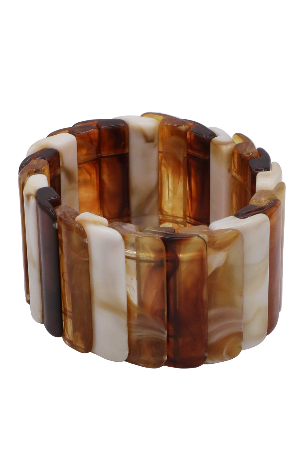 - A bold stretch bracelet crafted from chunky acrylic elements. Lightweight yet eye-catching, perfect for adding a modern statement to any outfit