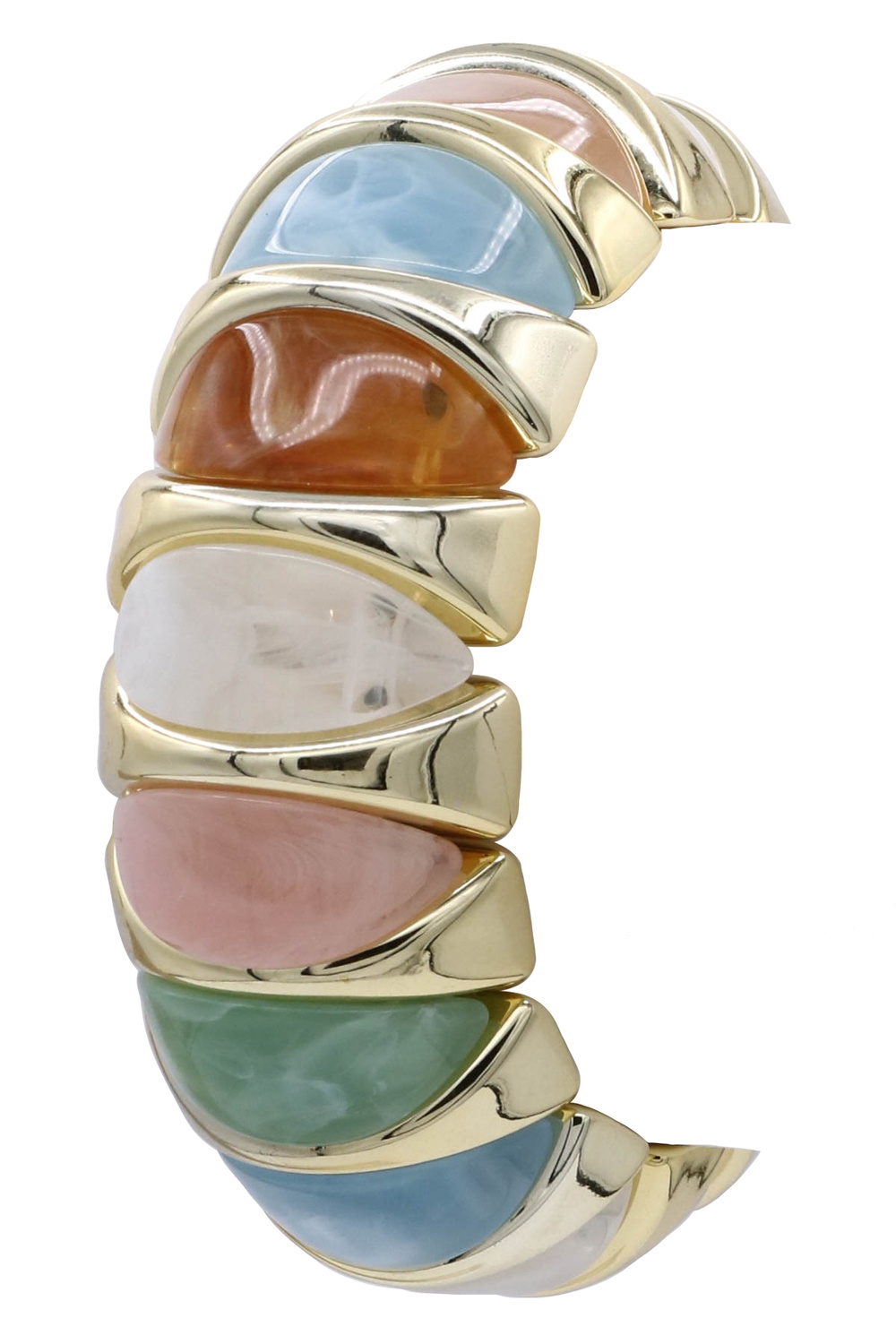 - Featuring oversized plastic beads on a flexible elastic band, this bracelet adds a playful pop to everyday outfits.