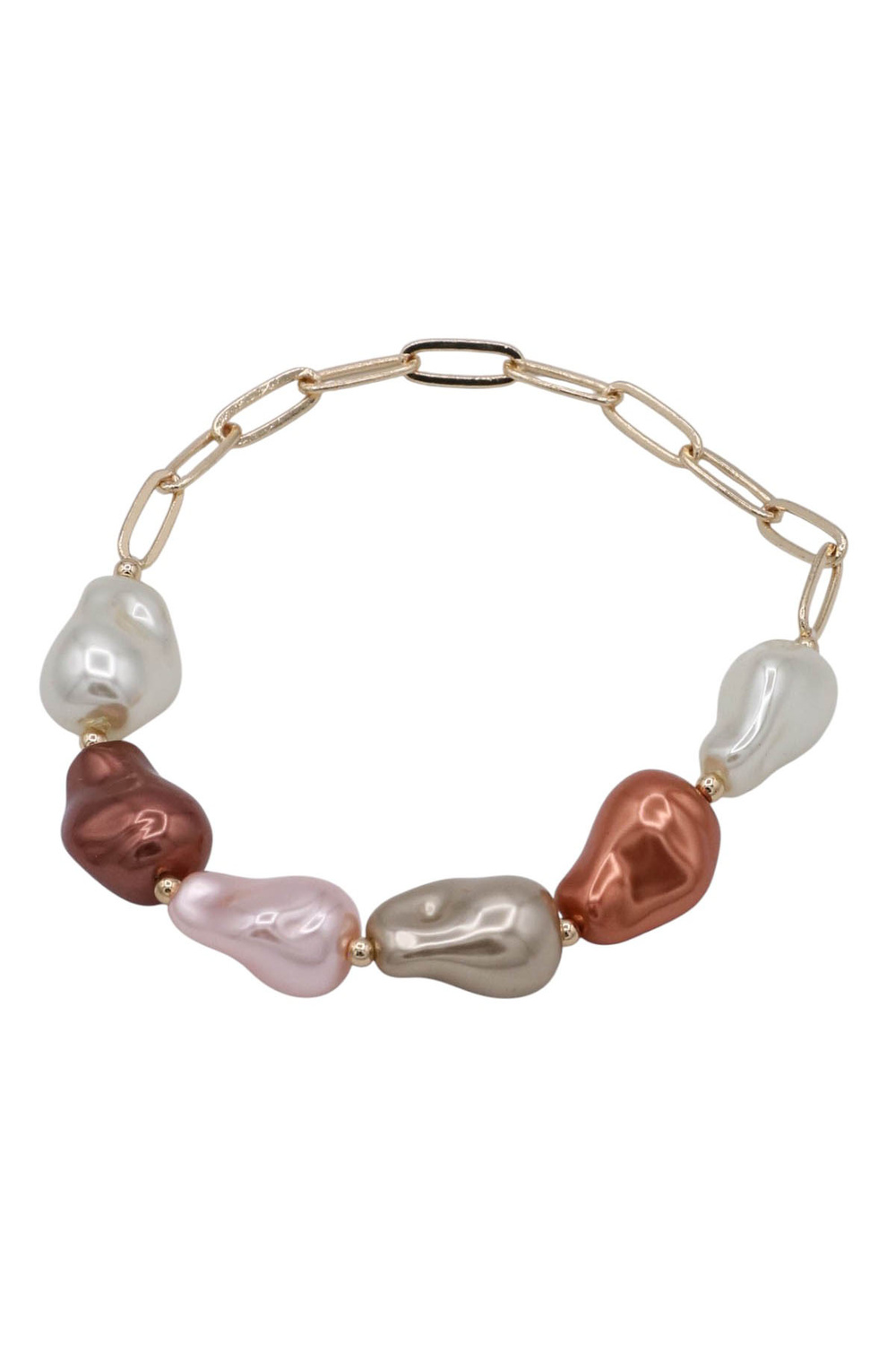 - Chic bracelet blending irregular baroque pearls with refined metal detailing. A beautiful balance of classic charm and contemporary style.