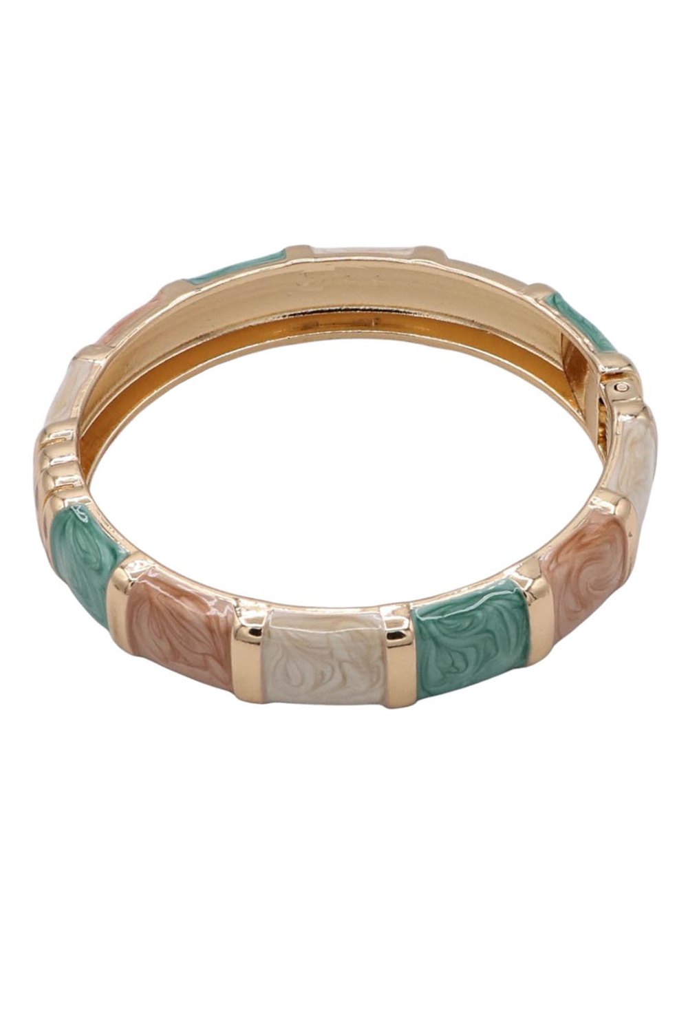 - Add a pop of color to your look with this metal bangle featuring a bold coated finish. Designed with a hinge for easy wear, it's a fun and fashionable accent piece.