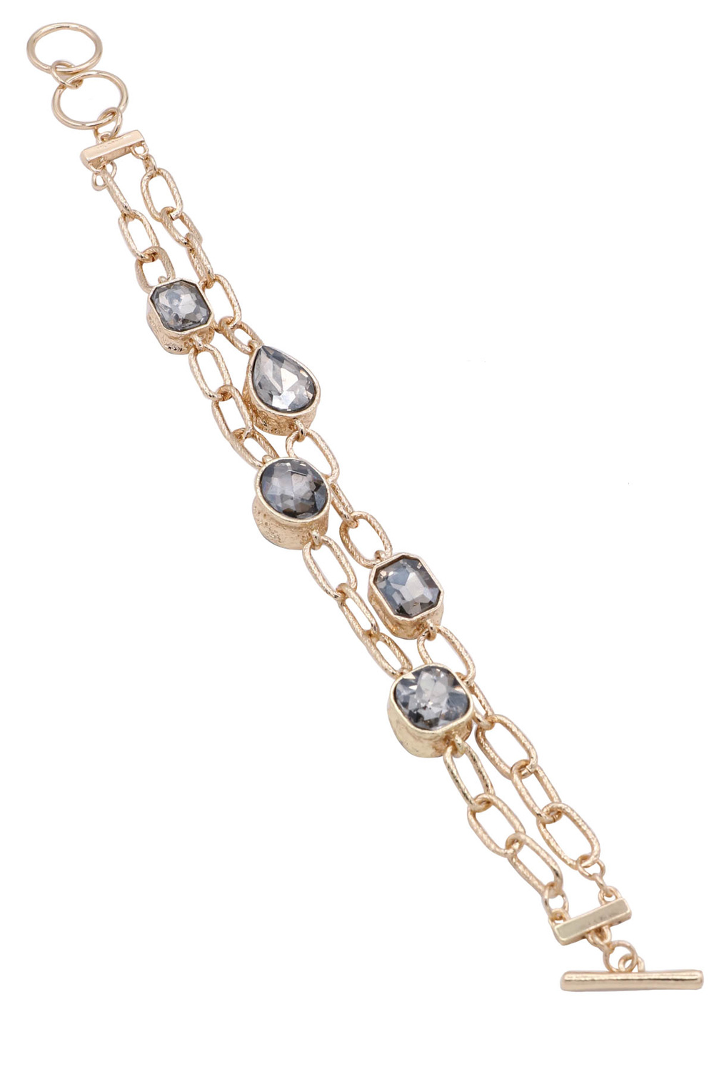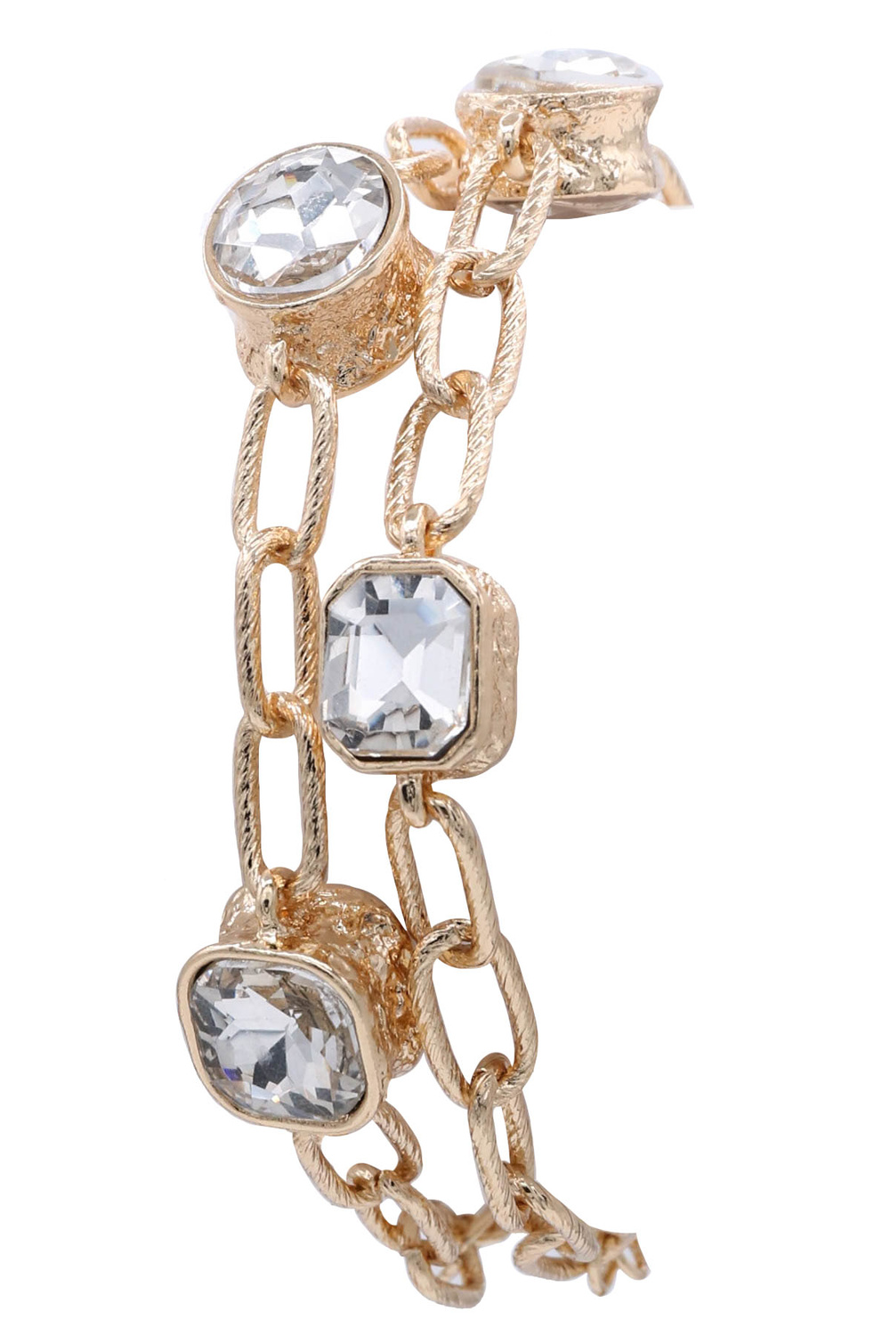 - Two dazzling glass stones set on a sleek open metal chain create a refined, layered bracelet.