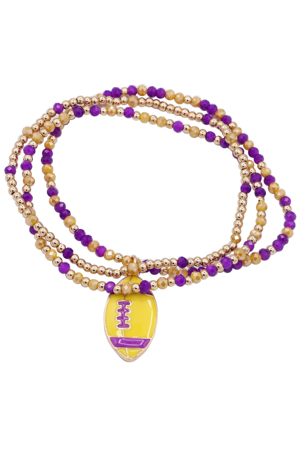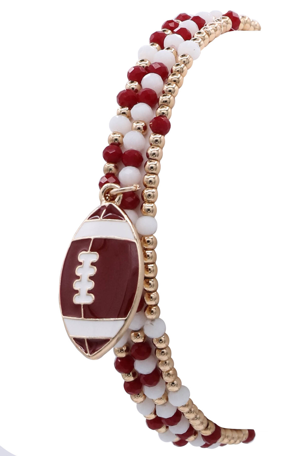 - Score major style points with this glass bead bracelet stack, completed with a football charm.