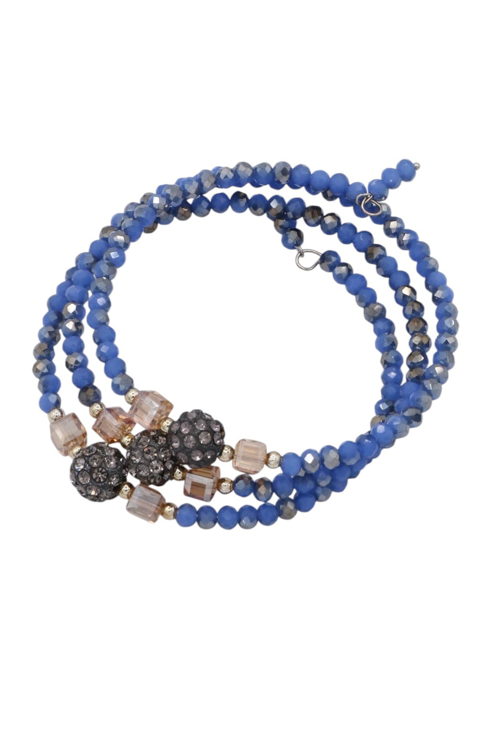 - A stylish coil bracelet featuring sparkling pave balls and colorful glass beads. Flexible and easy to wear, perfect for layering or adding a touch of sparkle to any outfit