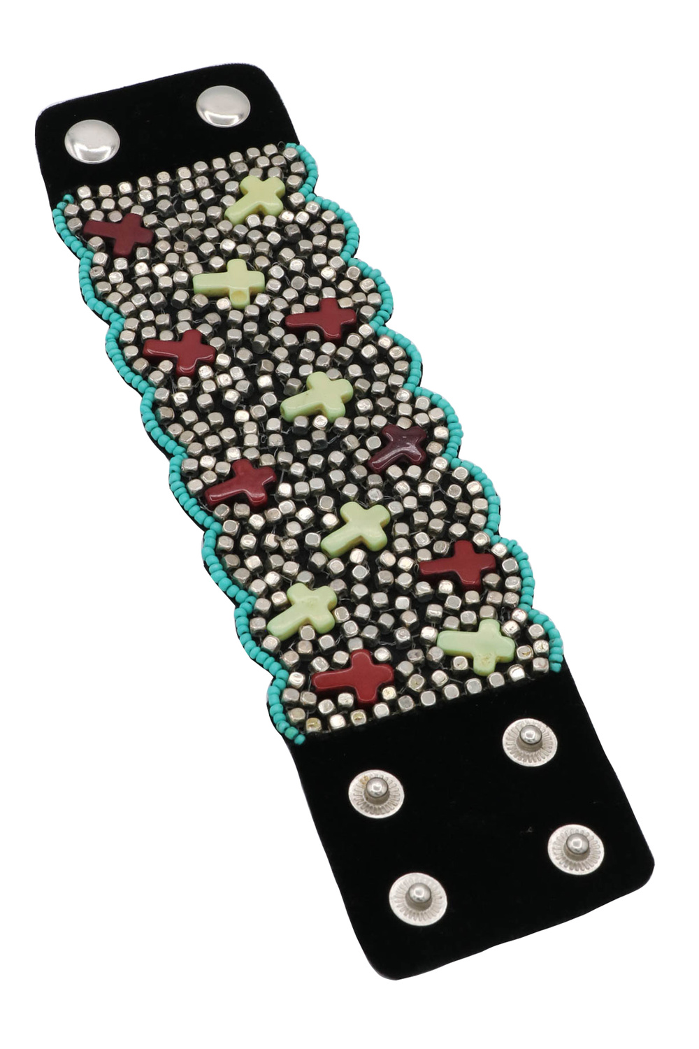 - Metal beaded bracelet featuring a cross accent. Stylish, comfortable, and easy to wear.