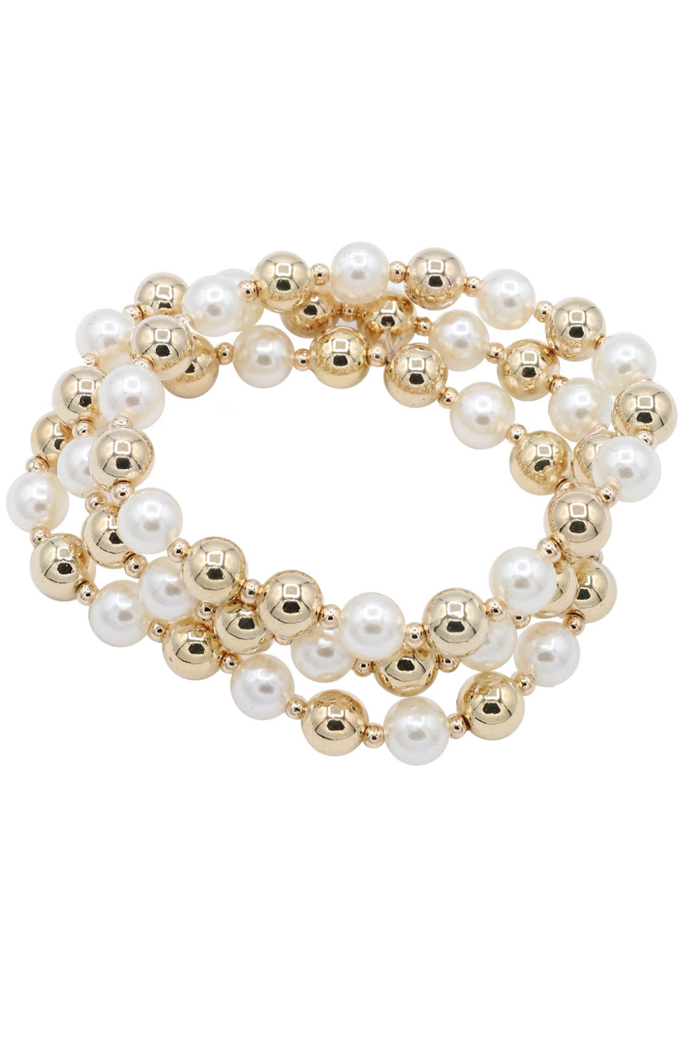 - Metal cream pearl beaded stretch bracelet set