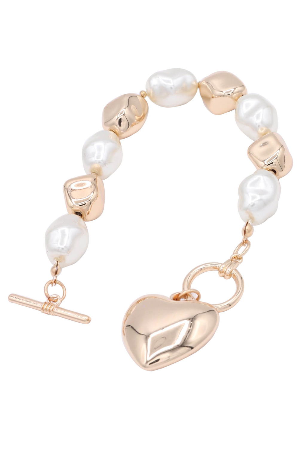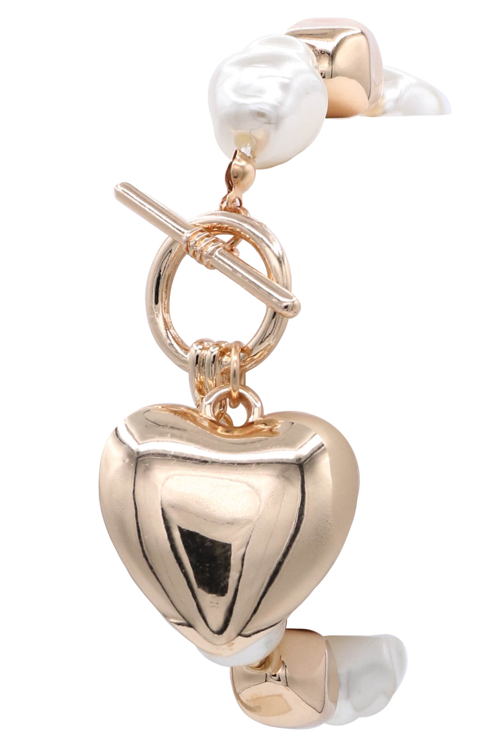 - Metal single CCB pearl puffy heart charm toggle bracelet