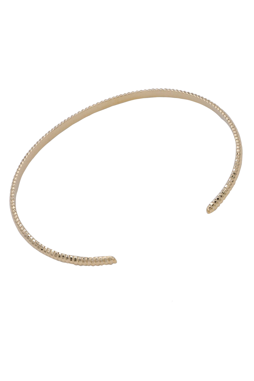 - This exquisite gold cuff bracelet is a testament to understated elegance and modern design. Crafted with a delicate yet durable metal, it features a unique textured surface that adds a subtle visual interest and a tactile dimension. It's a piece that speaks volumes through its elegant simplicity and meticulous attention to detail.