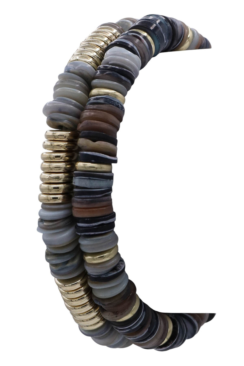 - A modern mix of texture and tone, this double-row bracelet showcases colorful shell discs on a comfortable stretch band. Effortlessly stylish for everyday wear.