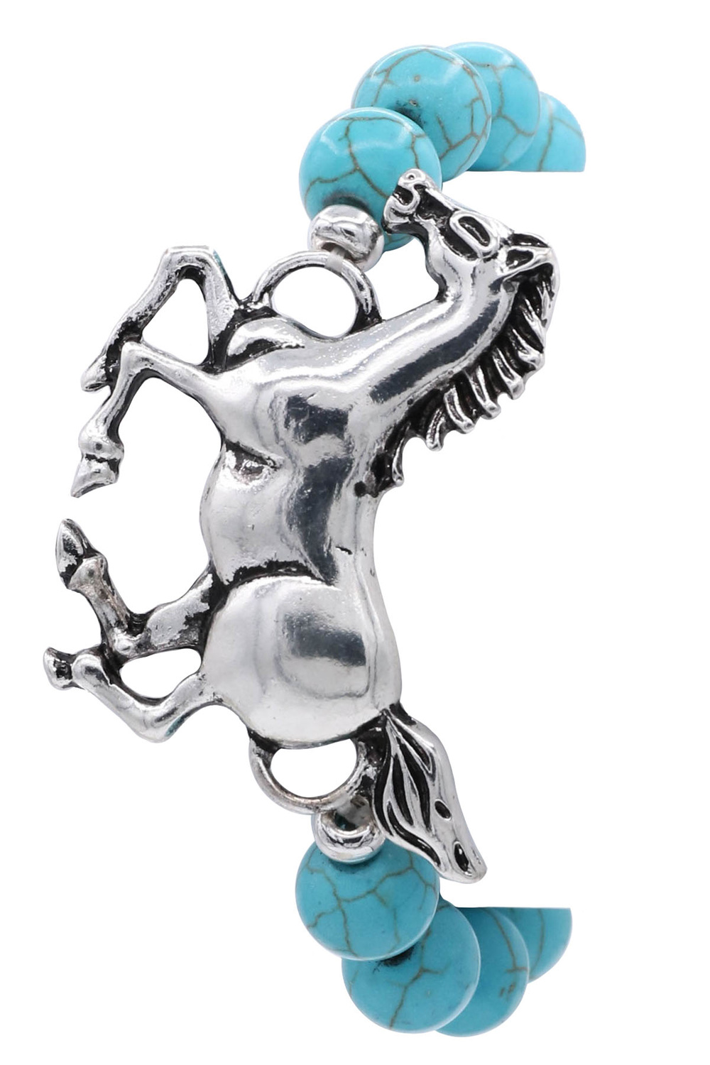 - Mix Western edge with modern style this stretch bracelet features sleek horse paired with natural stone beads for a bold, on-trend accessory.