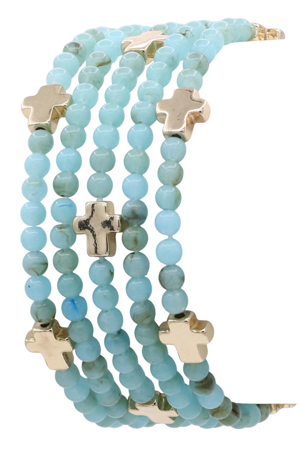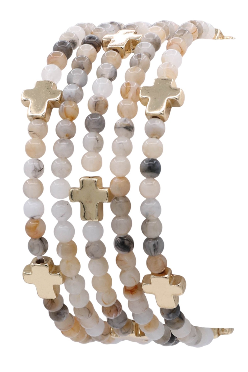 - This coordinated bracelet stack showcases smooth marble-style beads in a flexible stretch design. Lightweight, versatile, and ideal for effortless styling.