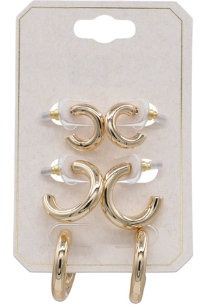 Stainless Steel Cross Hoop Earrings - 3 Pair Set