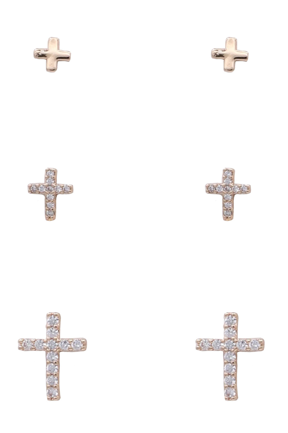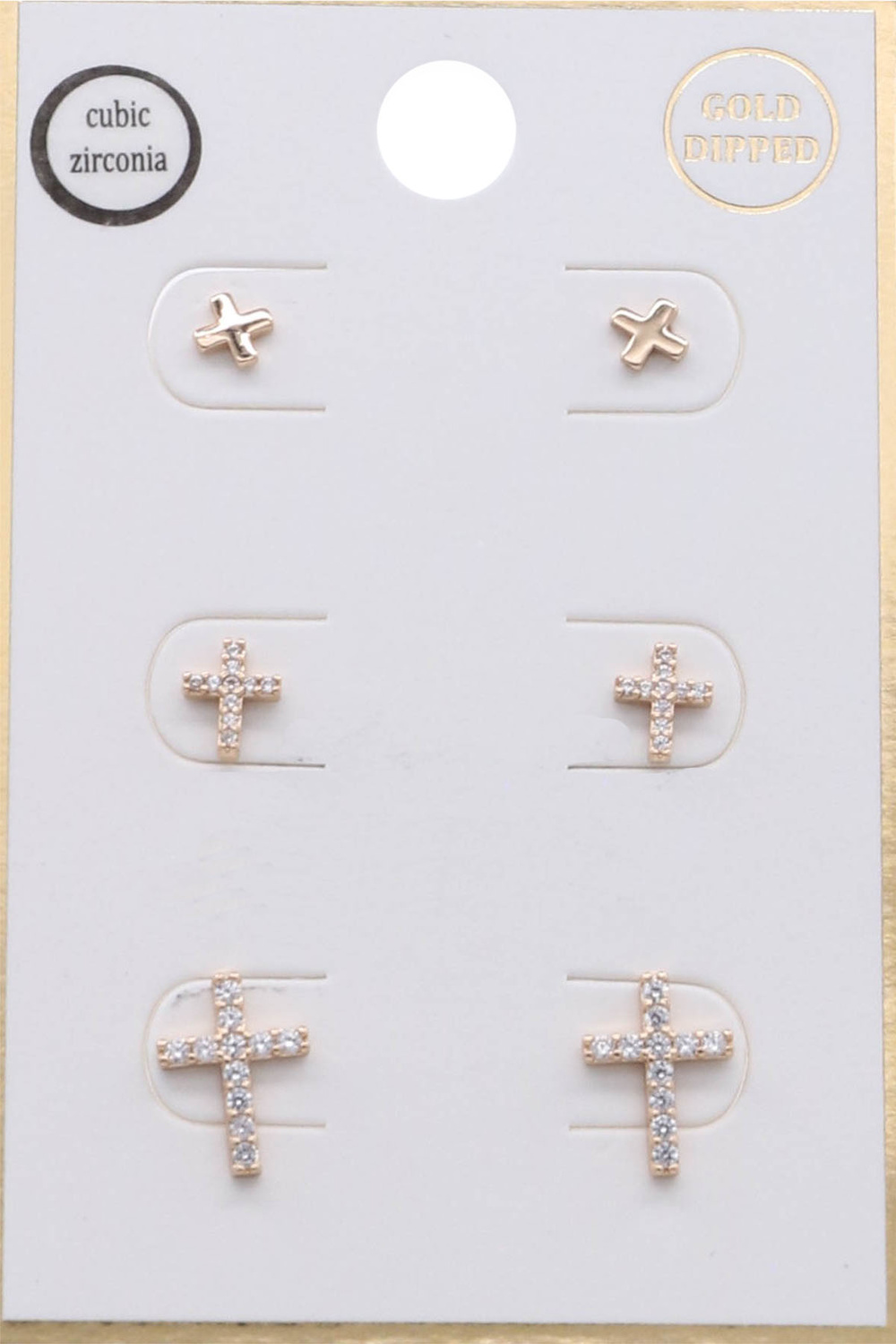 - A versatile trio of gold-dipped cross earrings accented with sparkling cubic zirconia.