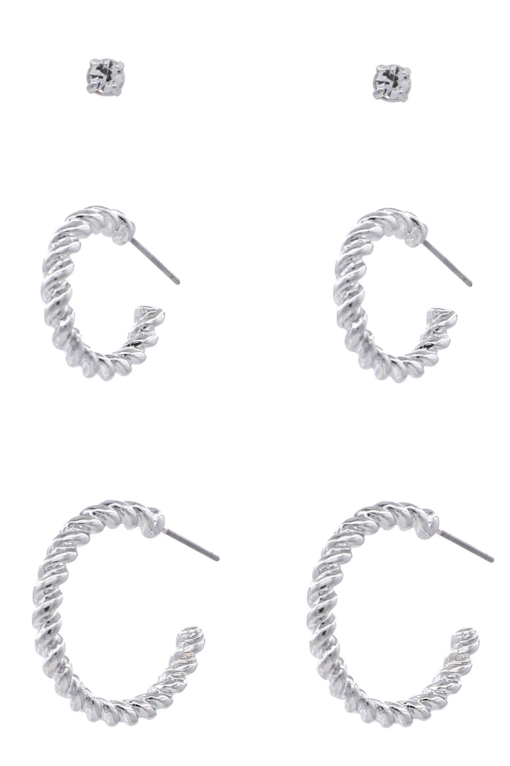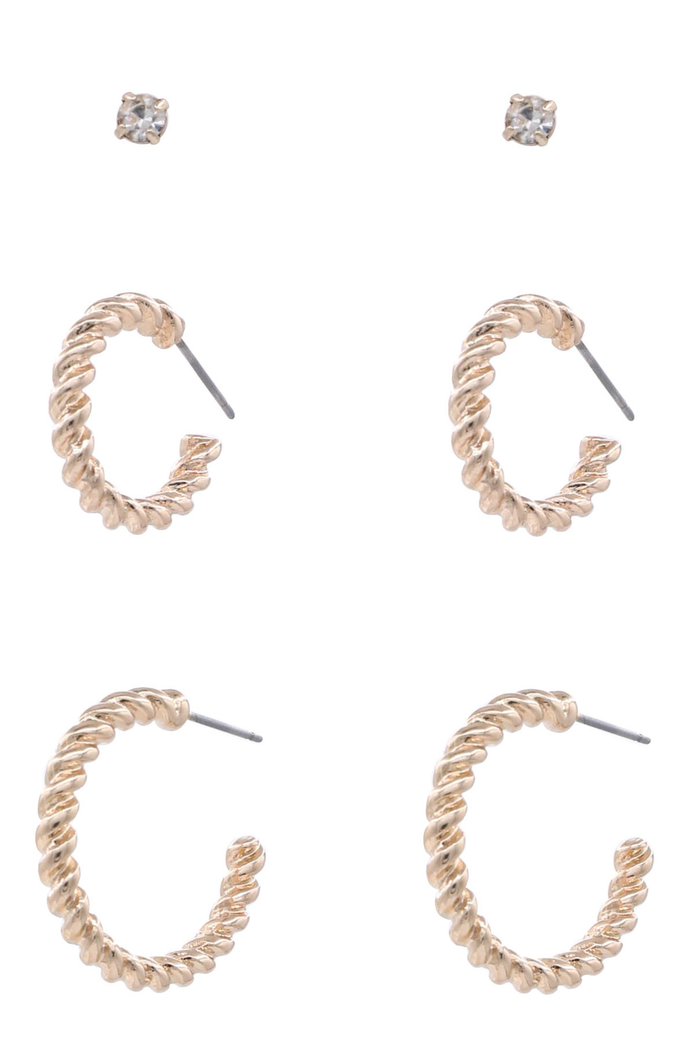- Twisted metal hoop earrings set