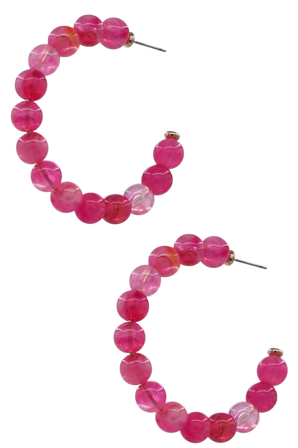 - Chic acrylic beaded hoop earrings that add texture and color to your everyday style. Lightweight and easy to wear all day.