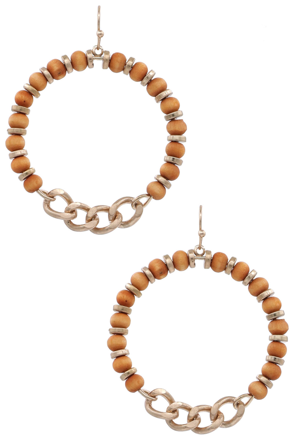 - Effortless boho chic. These hoop drop earrings pair natural wood beads with a sleek metal chain for the perfect balance of earthy and modern.