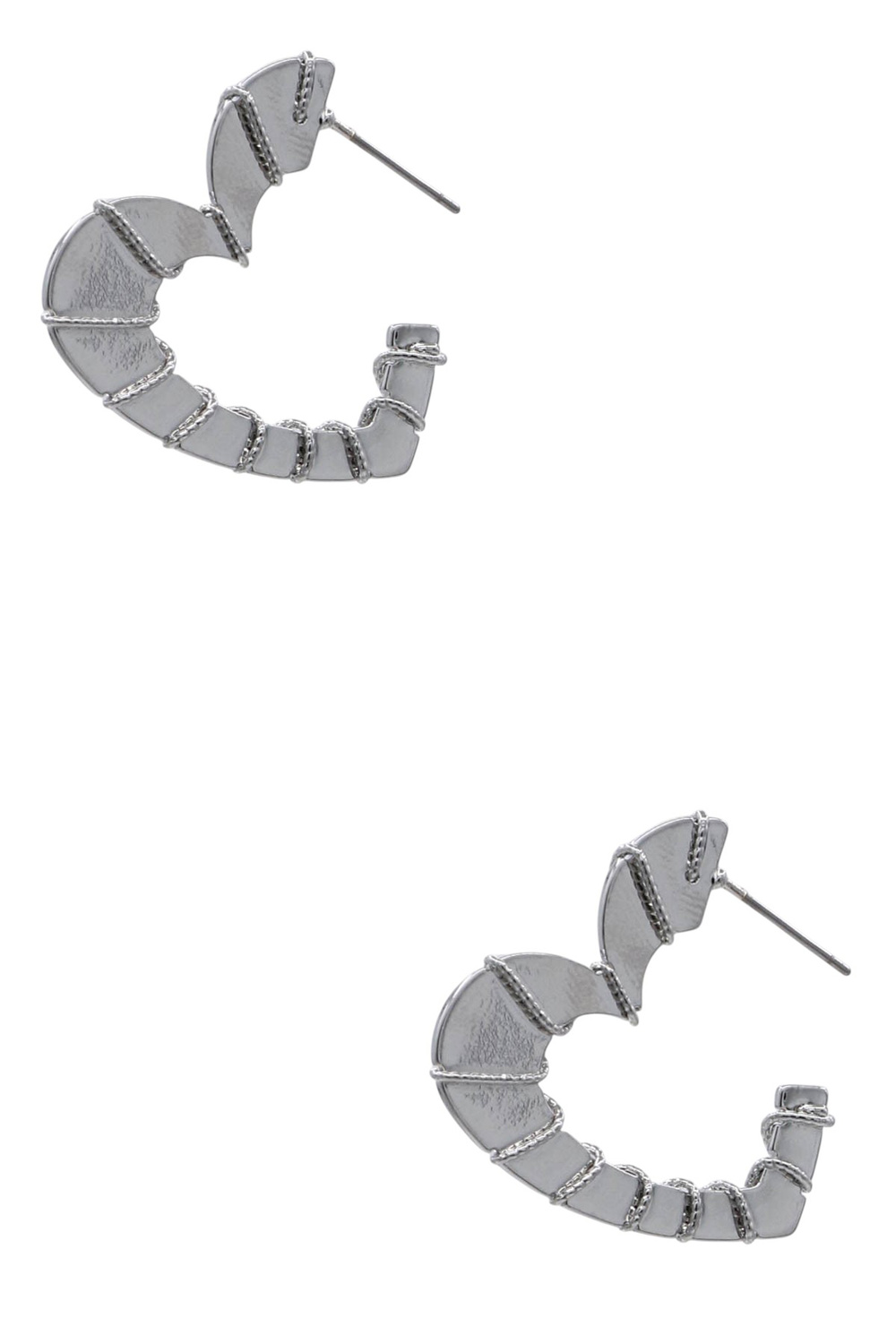 - Hoop earrings featuring a coiled brass metal heart design. Lightweight with a bold, romantic look.