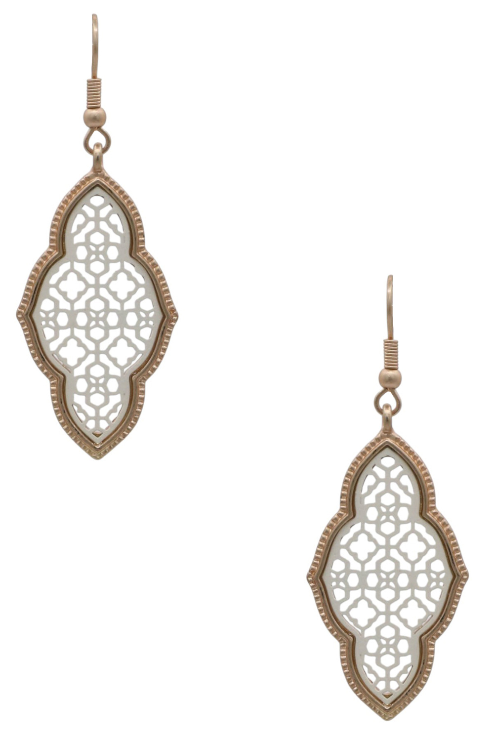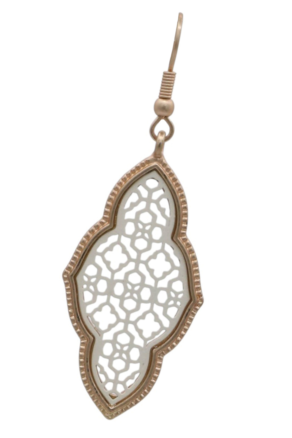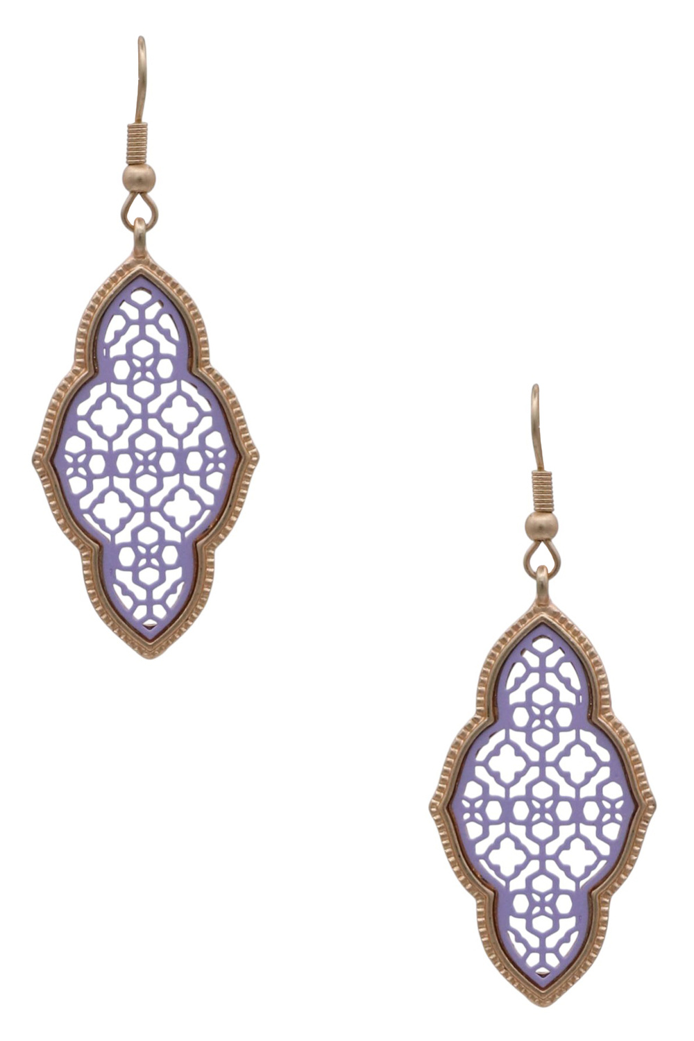 - Elegant and eye-catching, these matte metal earrings showcase a Moroccan-inspired fleur pattern for a chic, global-inspired look. Perfect for casual or dressy outfits.
