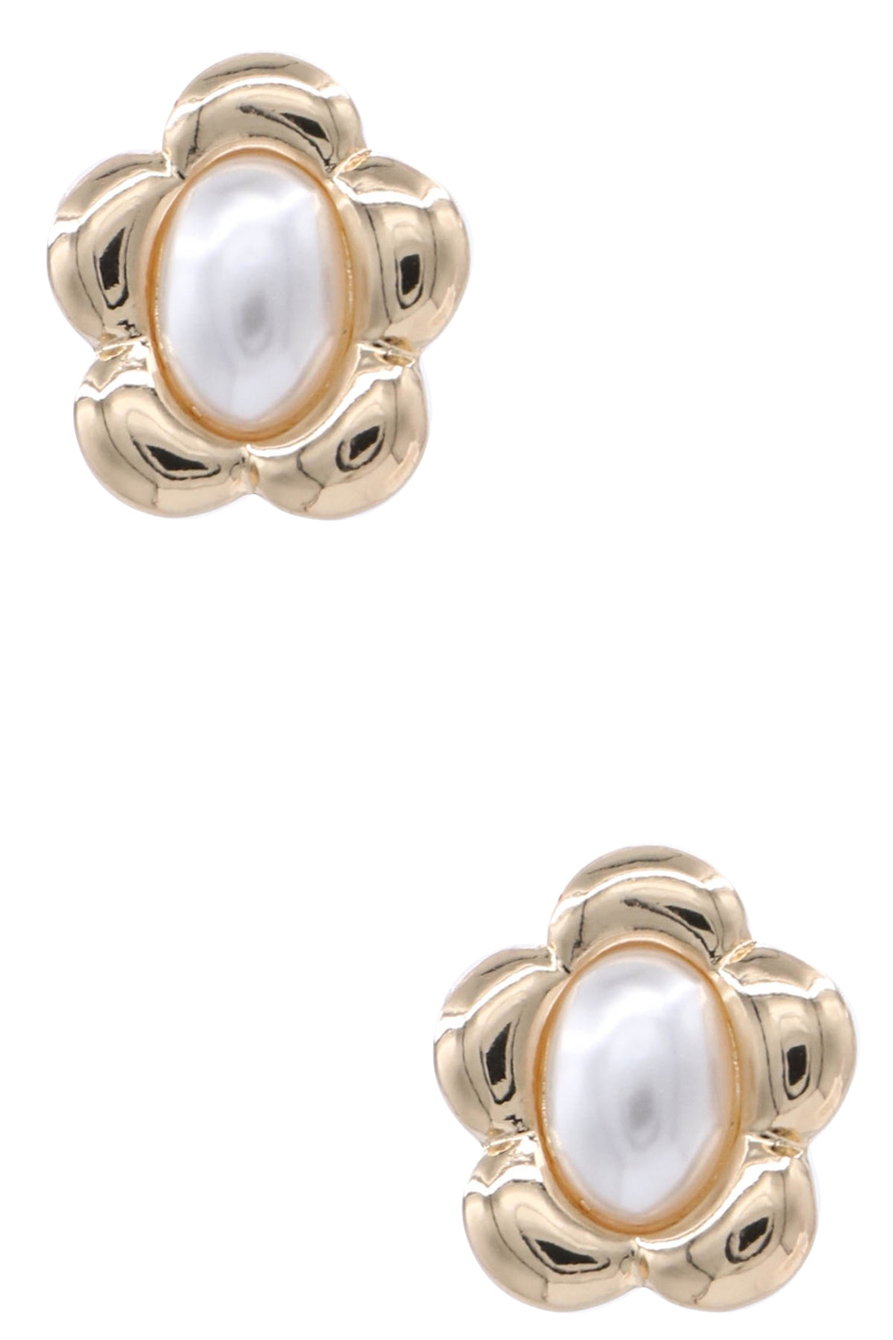 - Cream pearl sterling silver flower post earrings. 18K Gold dipped