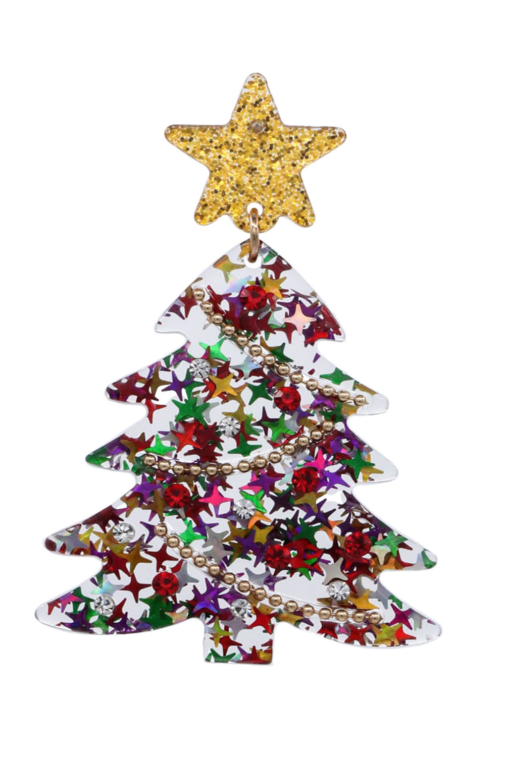 - Eye-catching Christmas tree earrings made of shimmering acetate. Lightweight and comfortable for all your holiday events and parties.