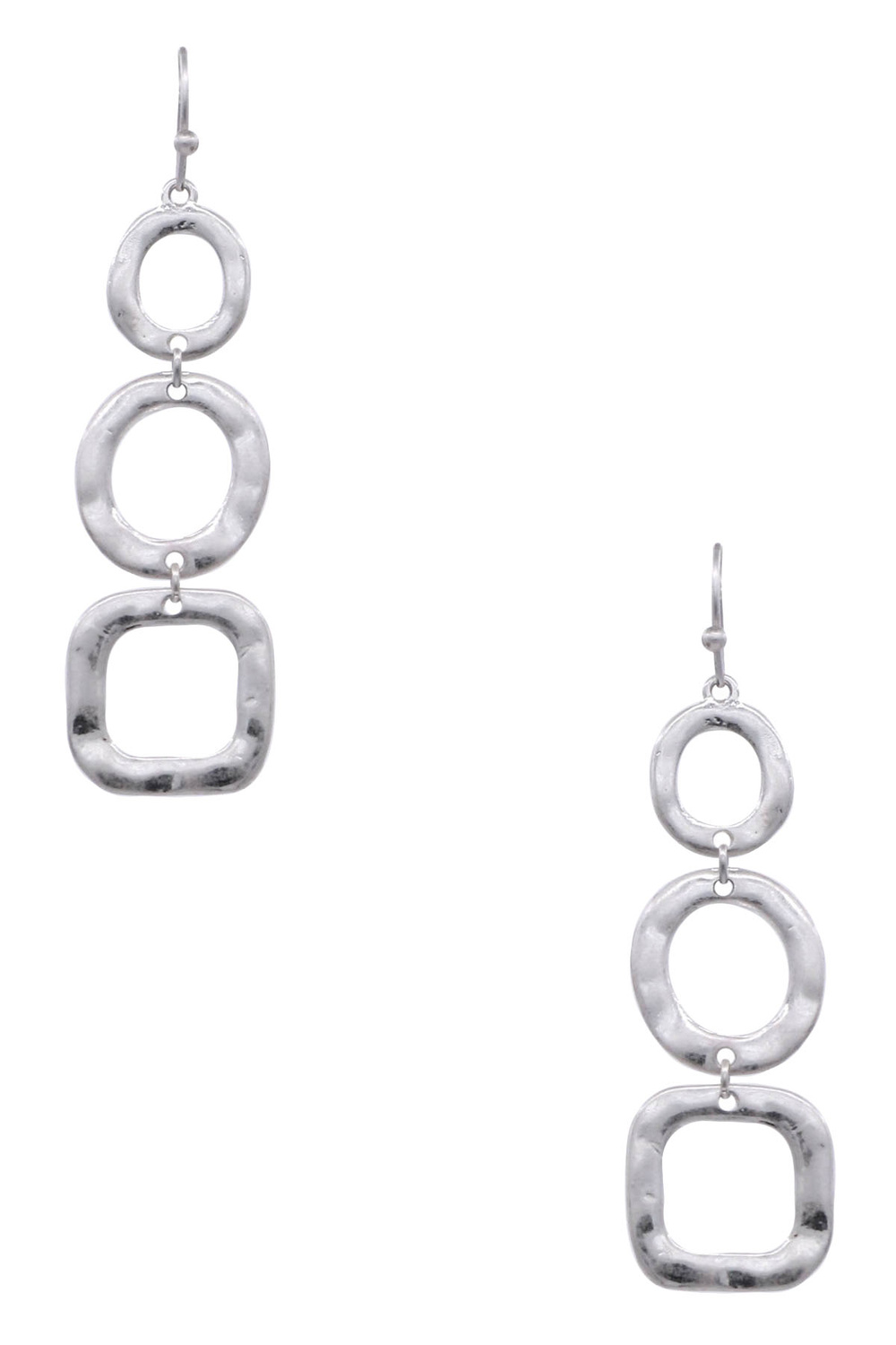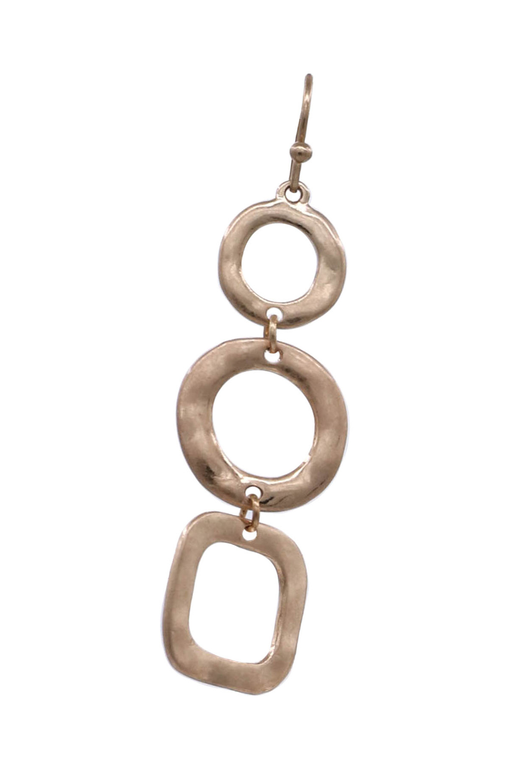 - Modern earrings with connected metal shapes showcasing intricate textures. Perfect for adding a contemporary touch to any outfit.