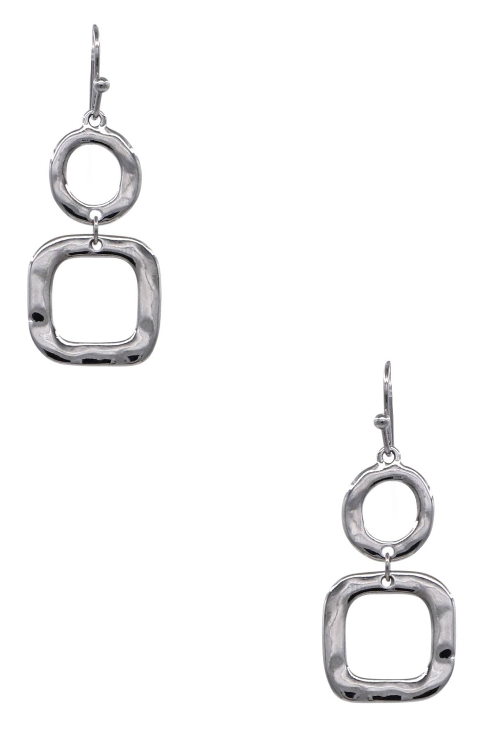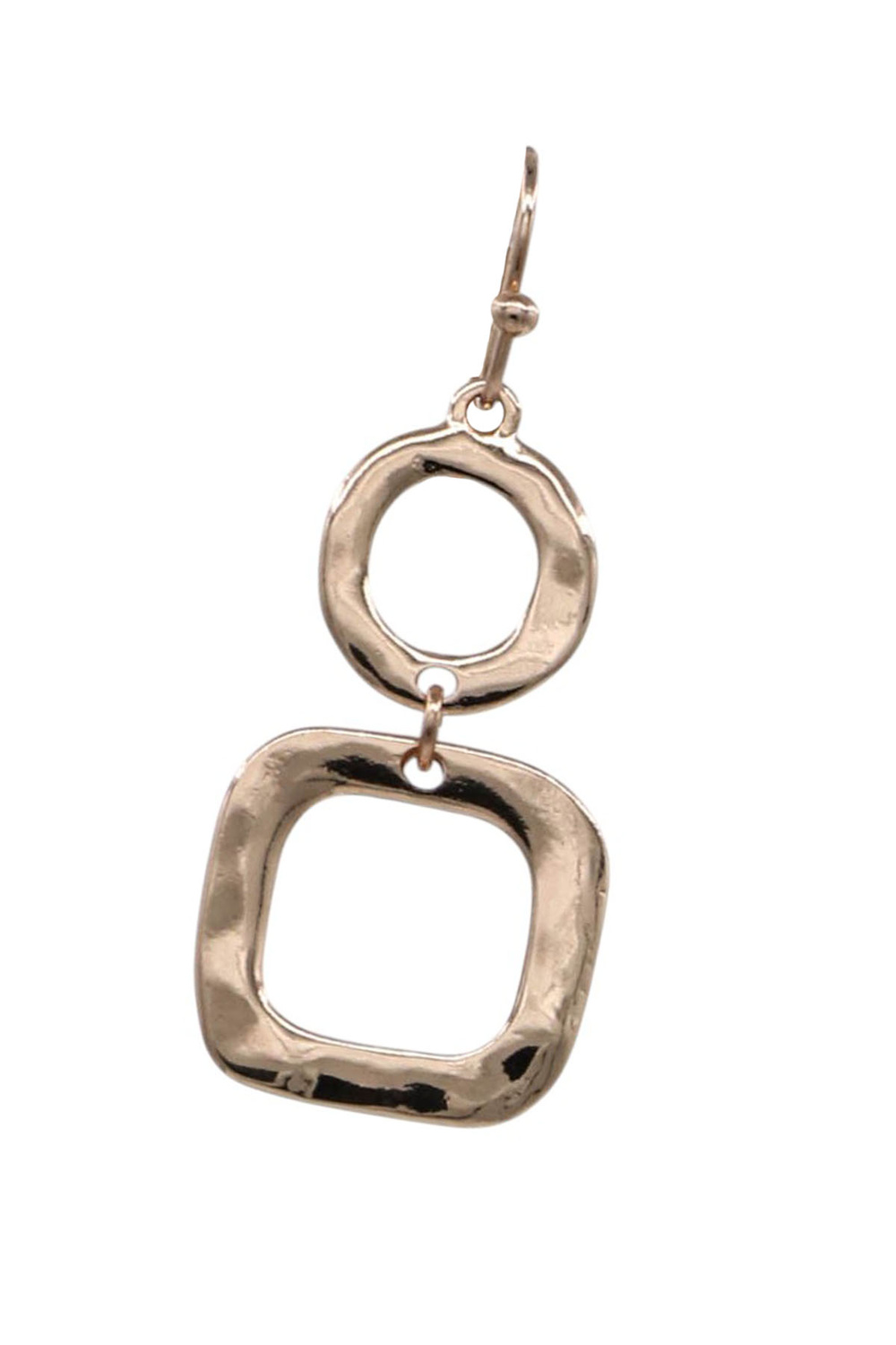 - Stylish earrings with two connected hammered metal shapes that add texture and shine.