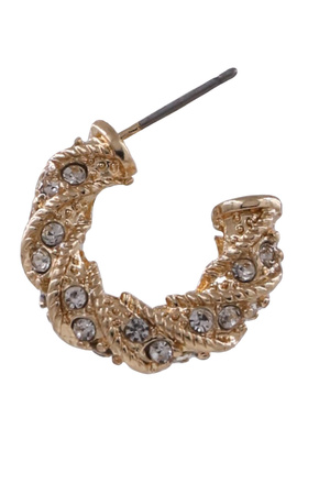 Metal Stone Pave Twisted Hoop Earrings