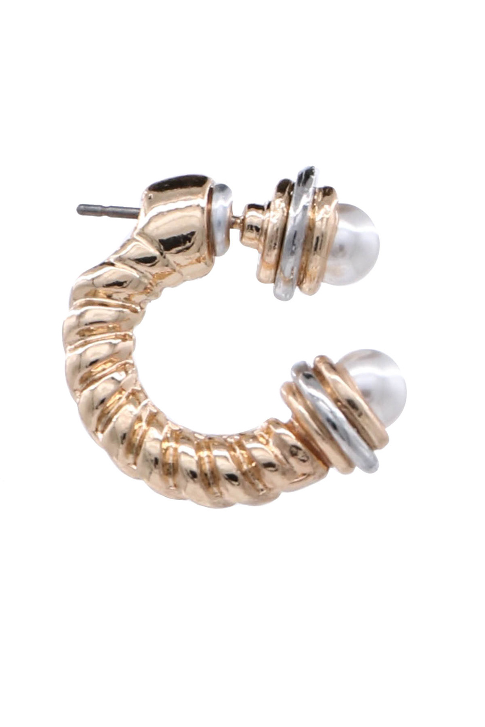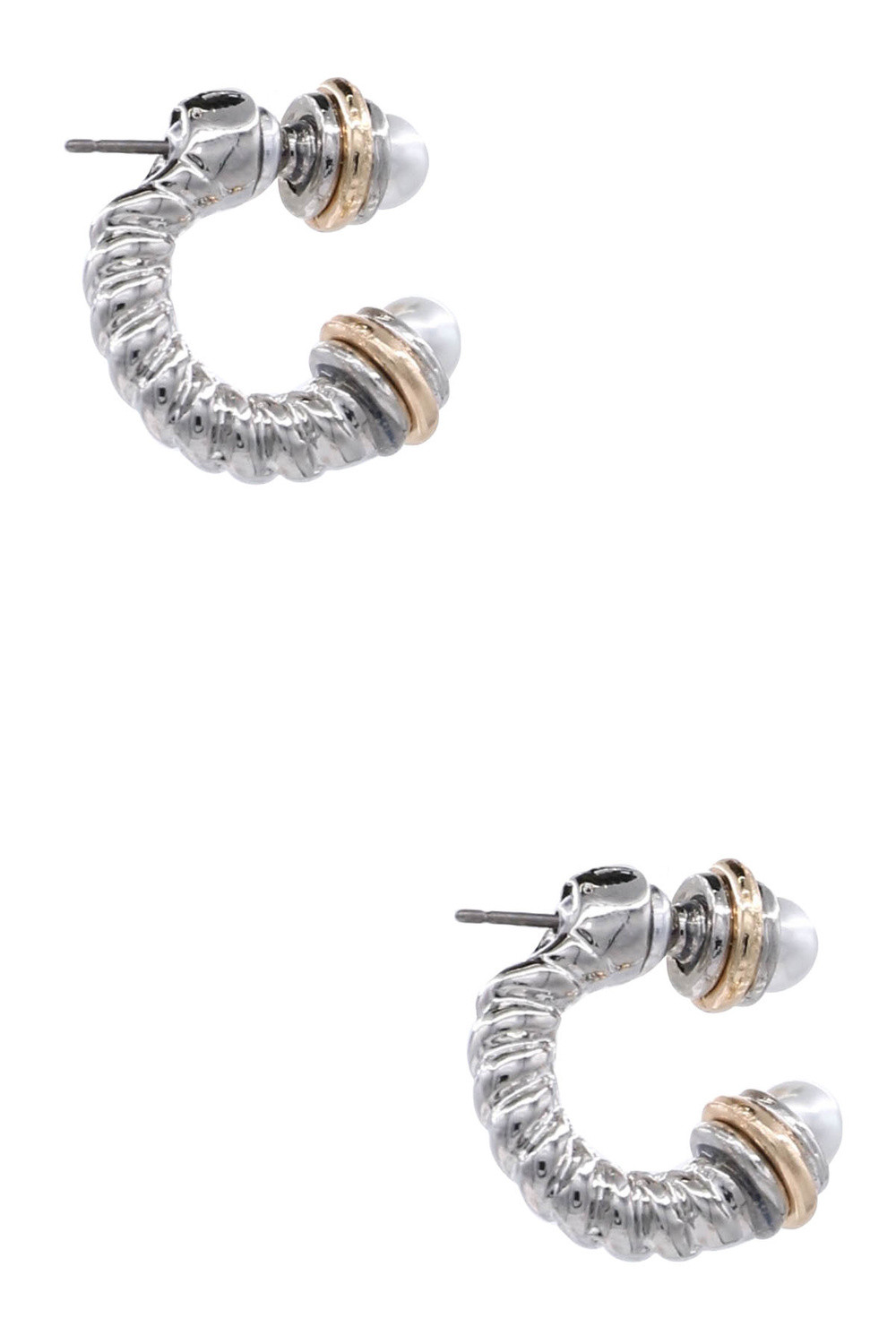 Dual Tone Twist Ball Ended Hoop Earrings