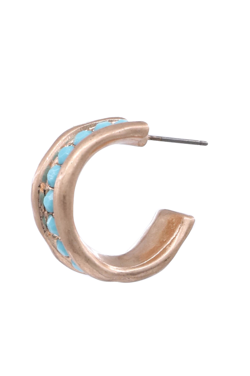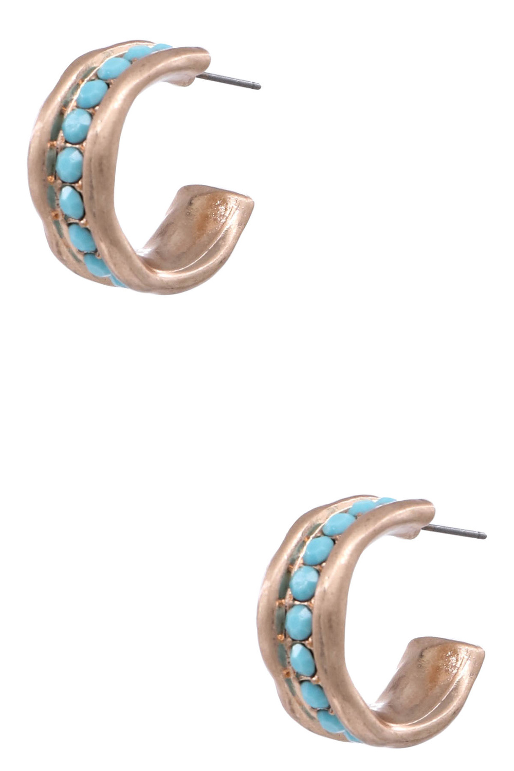 • These stylish half hoop earrings feature a smooth metal finish with eye-catching stone accents